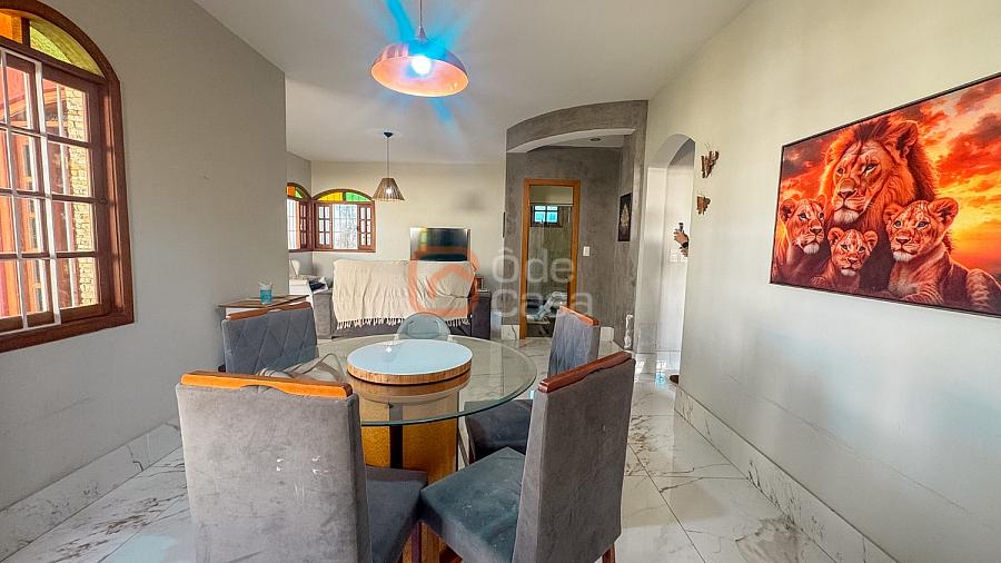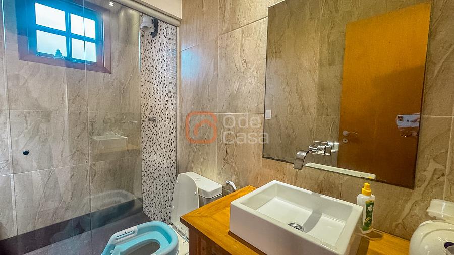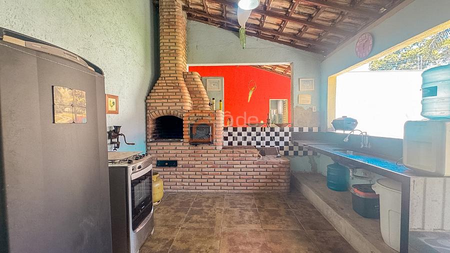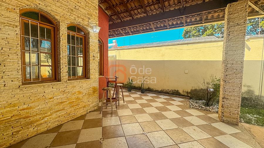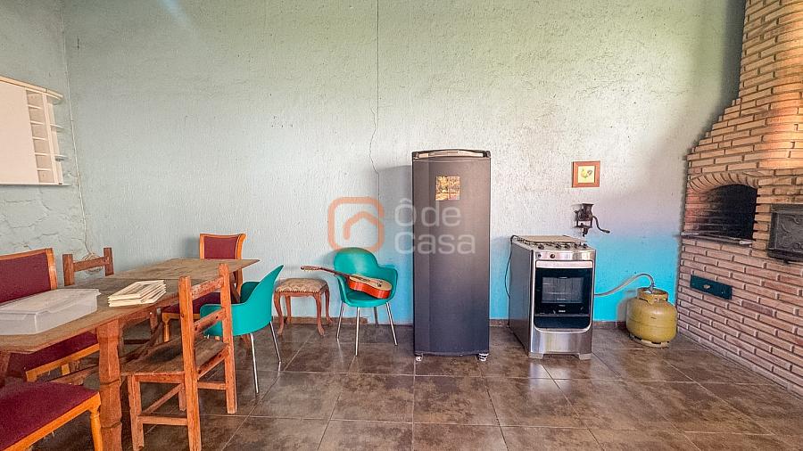 Quintal com área gourmet com churrasqueira e fogão à lenha, além de parte descoberta e gramada. 1 quarto de despejo, banheiro externo e área de serviço independente. Possui canil na garagem.