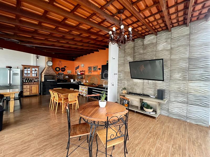 Área externa: Amplo quintal gramado, piscina aquecida, sauna a gás com acesso à piscina, ducha e banheiro externo. Espaço gourmet completa, com churrasqueira e cozinha.