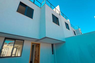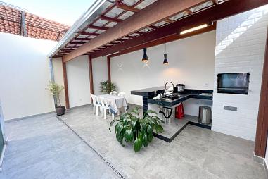 1° Pavimento: Garagem para 2 carros paralelos, sala, 1 quarto, cozinha com marcenaria, espaço externo com lavanderia.