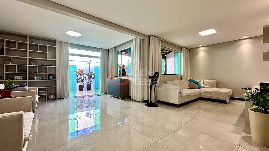 São 3 quartos, sendo 1 suíte, sala de estar para 3 ambientes integrada à copa e cozinha americana com bancadas em granito, marcenaria completa e projeto de iluminação em LED. O espaço gourmet é integrado ao quintal com piscina, churrasqueira de apoio e lavabo, além de sauna e um quarto externo que pode ser usado como hóspede ou home office.