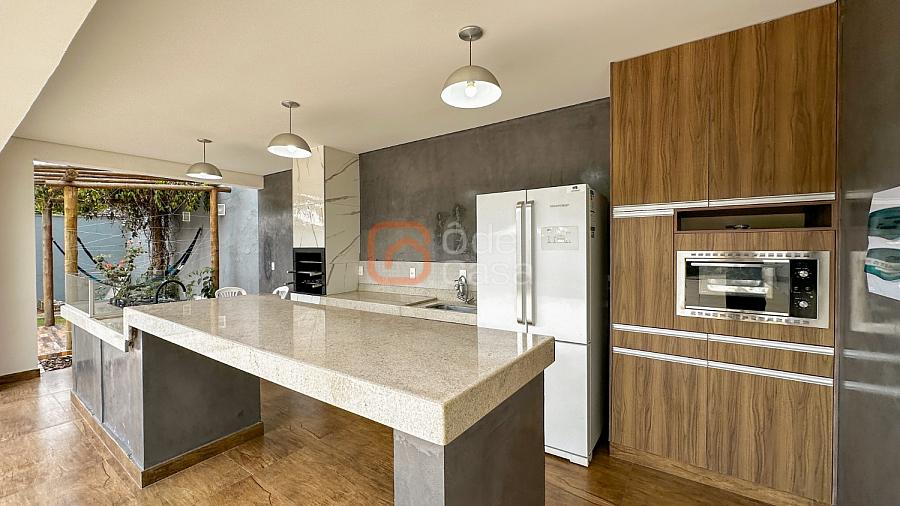 1° Pavimento: Sala para 3 ambientes com pé direito duplo, lavabo, cozinha estilo americana com armários planejados e cocktop, área de serviço, cômodo na área de serviço que pode ser usado como DCE ou escritório, 2 suítes com closet.