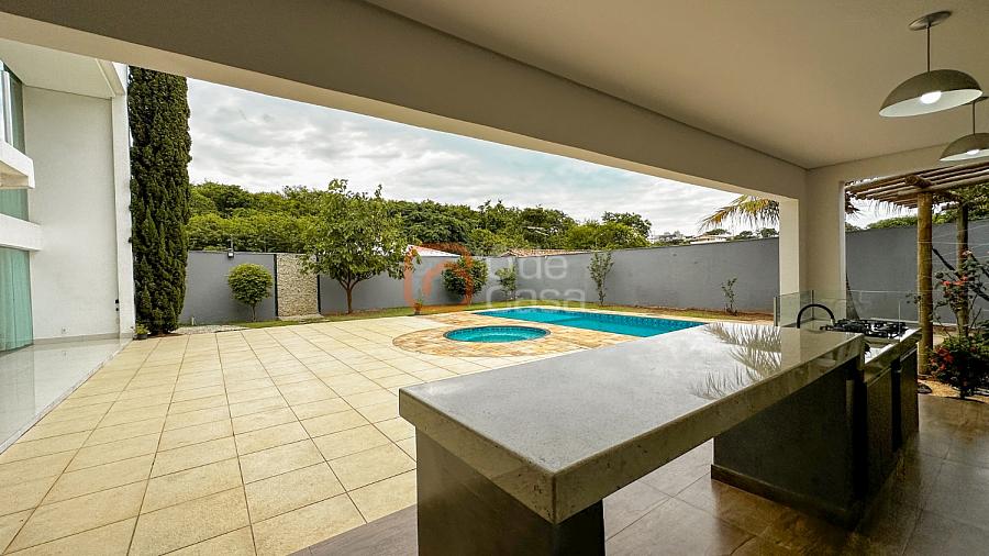 Área externa: Paisagismo, piscina com cascata, SPA, ducha, espaço gourmet com churrasqueira e pergolado.