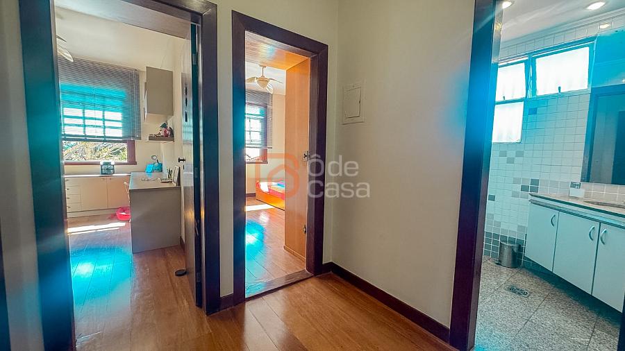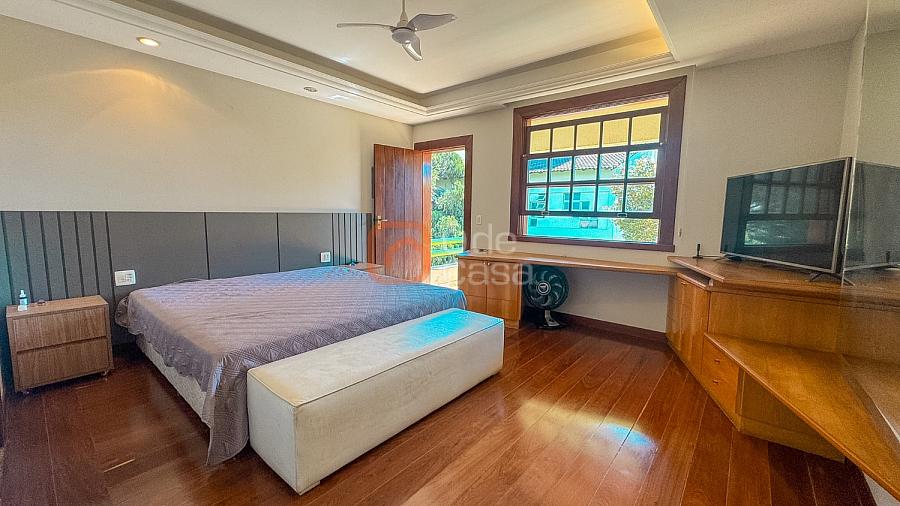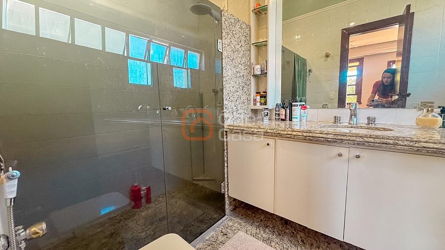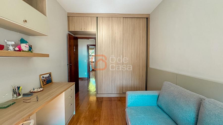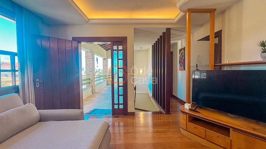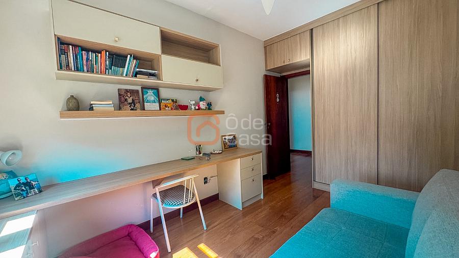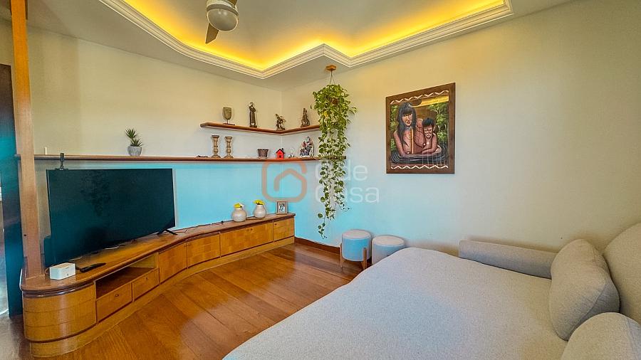 2° PAVIMENTO: Sala de TV com varanda frontal, 3 quartos, sendo 1 suíte master com closet, hidromassagem e varanda voltada para o quintal, além de banheiro social. Todos os quartos e banheiros com armários planejados.