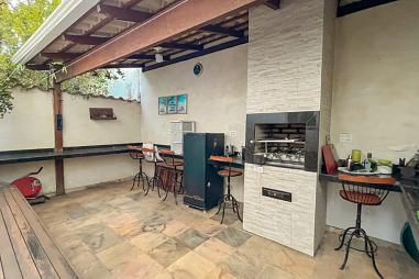 1° Pavimento: Sala para dois ambientes, lavabo, cozinha, espaço gourmet com churrasqueira e quintal gramado