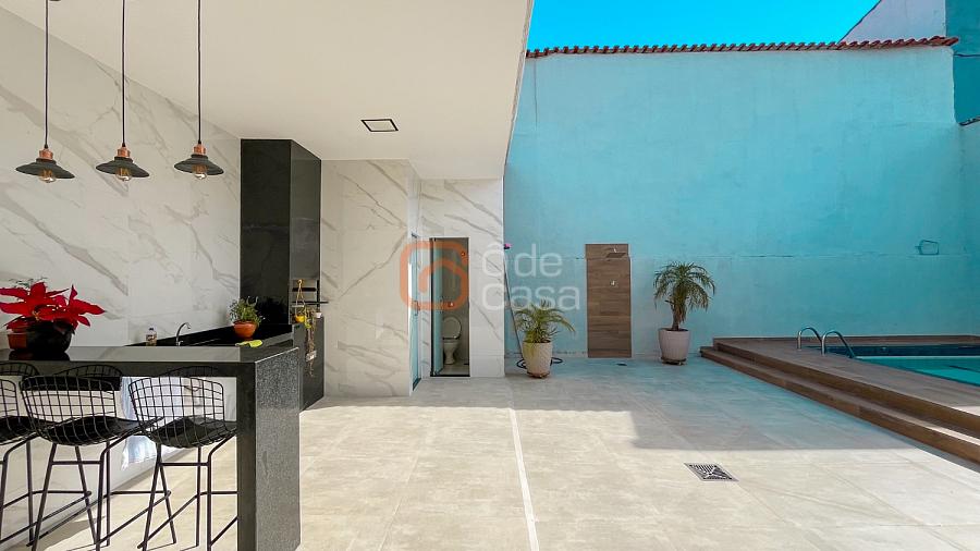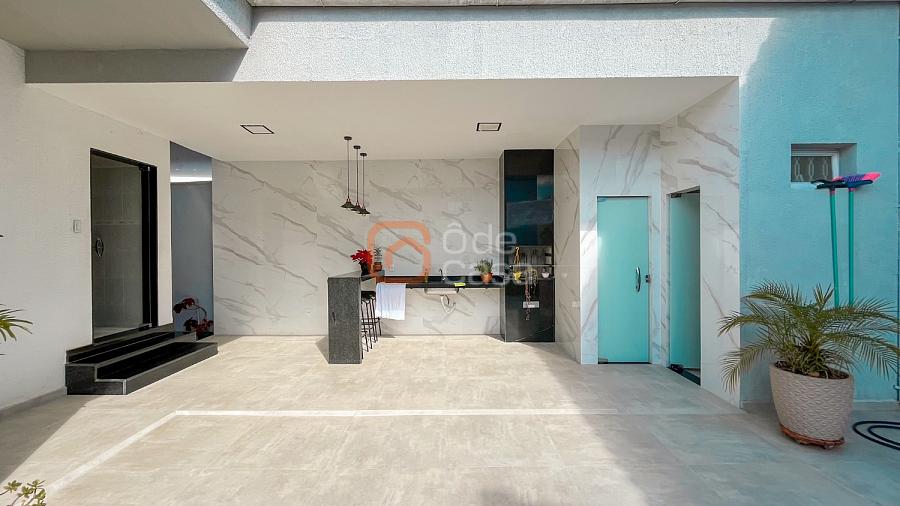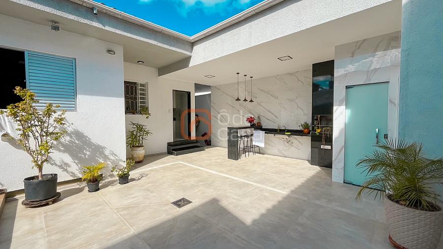 Acabamento de qualidade com porcelanato, partes em cerâmica, bancadas em granito e janelas em blindex. A casa possui estrutura preparada para construção de mais um pavimento.