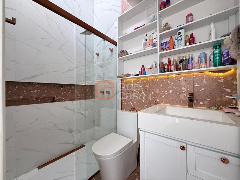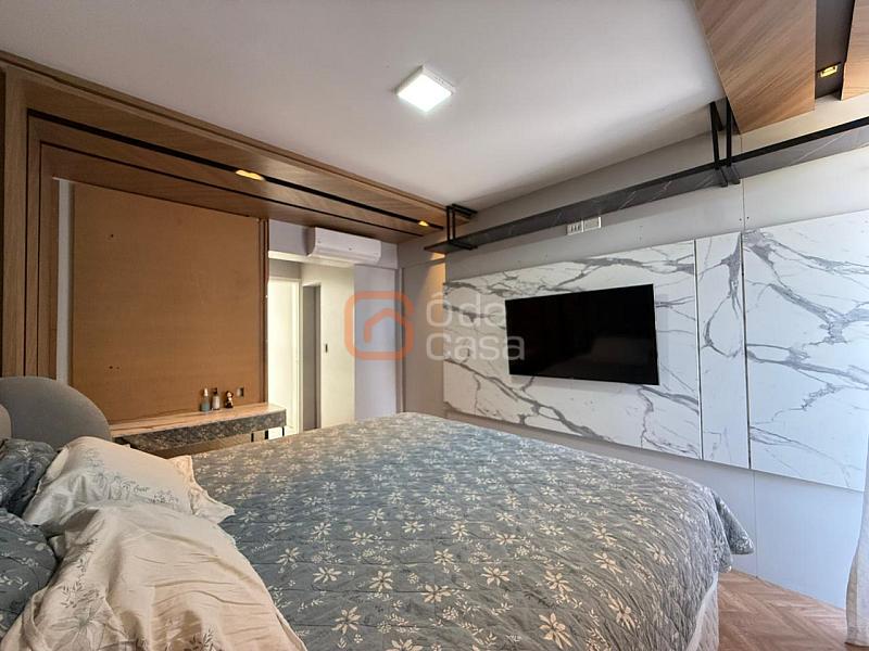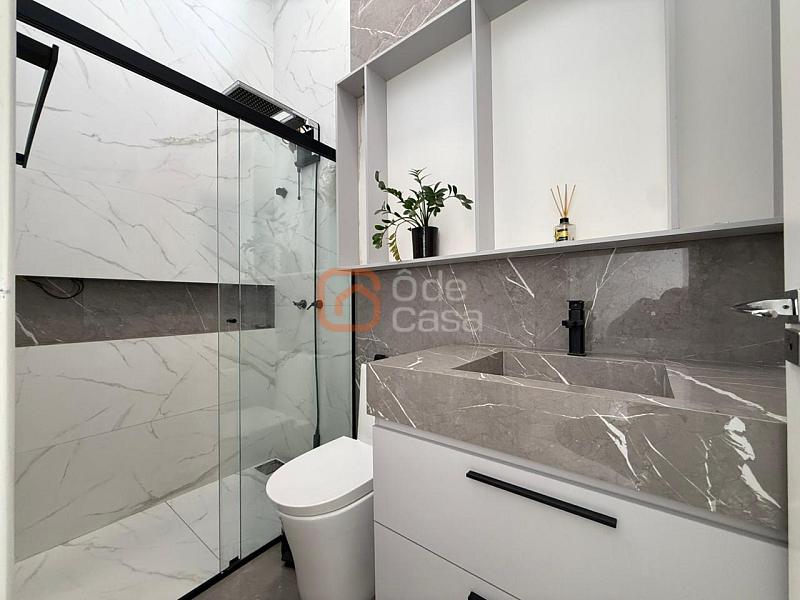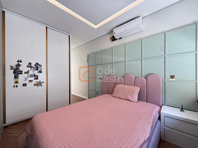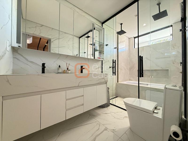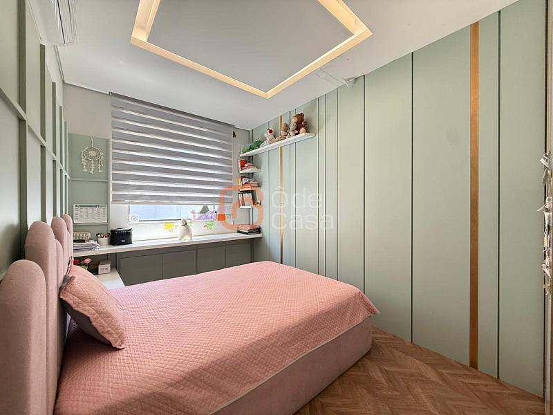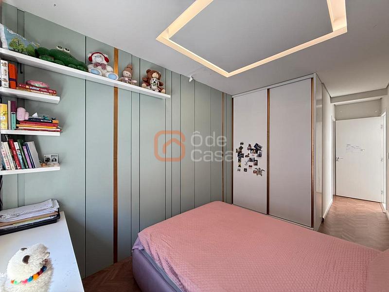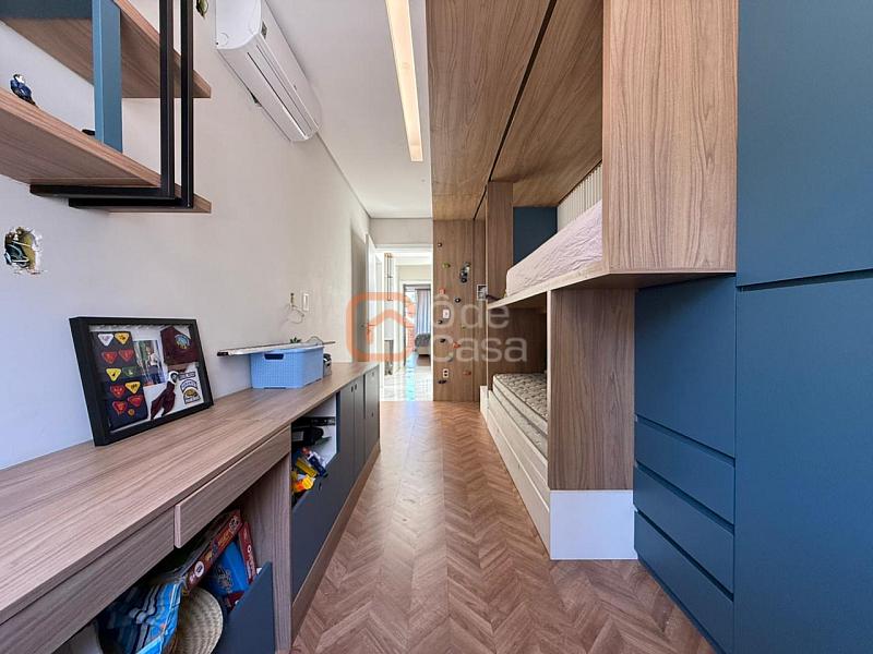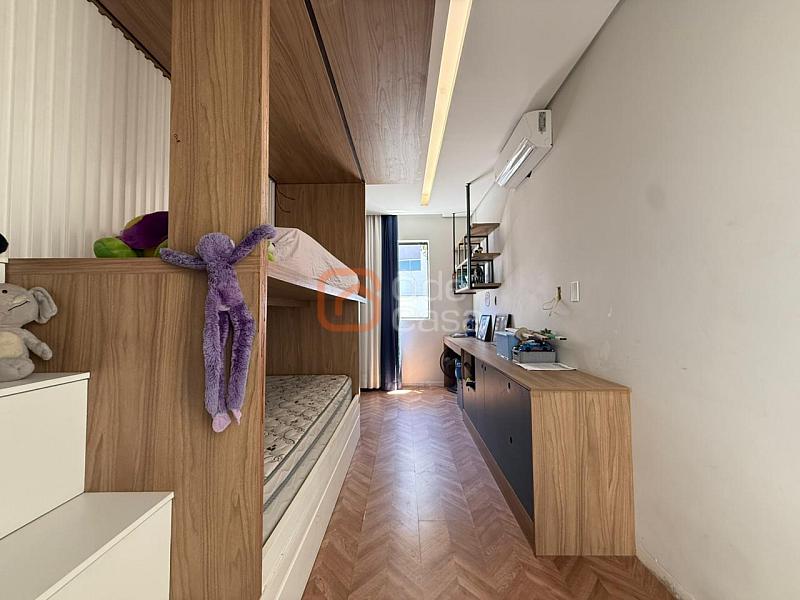 No segundo pavimento, são 3 quartos com marcenaria premium e ar-condicionado instalado, sendo duas suítes. A Suíte Master apresenta closet, varanda privativa, banheira de hidromassagem e duas duchas, proporcionando conforto e privacidade.