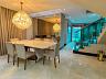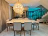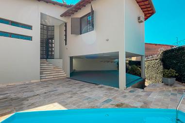 1° Pavimento: Sala de estar , sala para dois ambientes, lavabo, cozinha com armários, despensa, área externa com piscina e sauna com aquecimento elétrico, além de cascata na piscina, espaço gourmet com churrasqueira e armários, área de serviço independente e lavabo. Entradas laterais.