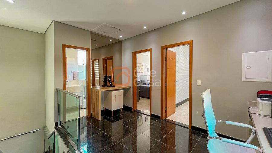 2° Pavimento: 3 quartos com closet, sendo 2 suítes com varanda, sala de TV utilizada com home office e banheiro social.