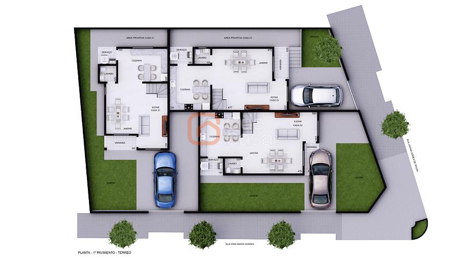 ▫️ 1° PAVIMENTO: Sala TV, sala de jantar, cozinha, lavabo, lavanderia e área externa.