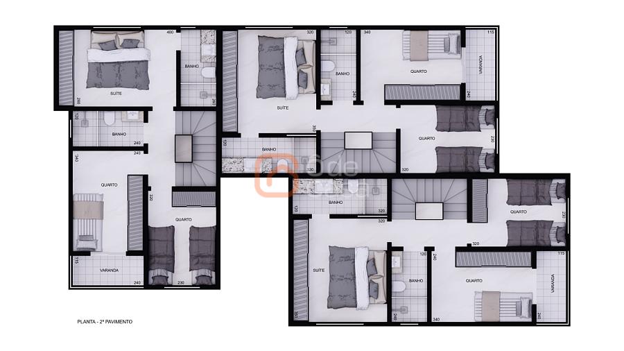 ▫️ 2° PAVIMENTO: 3 quartos sendo uma suite e banheiro social