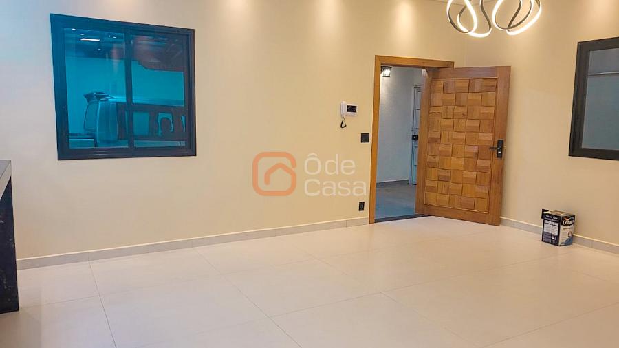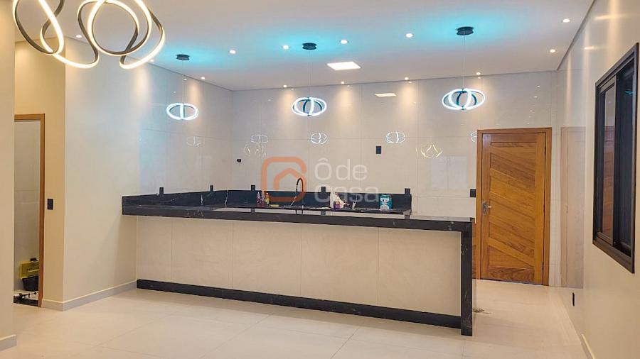 Casa linear com garagem para até 3 carros, sala espaçosa com iluminação embutida, lavanderia contendo 1 armário de tanque , sala e cozinha conjugada com separação por ilha 1 banheiro social contendo box até o teto + armário de pia em blindex ,1 banheiro suíte contendo box até o teto + armário de pia em blindex .