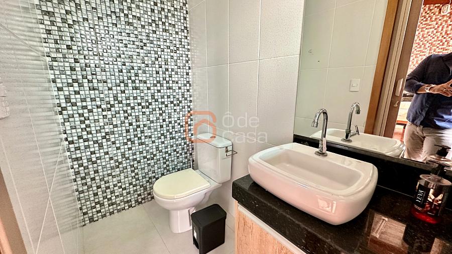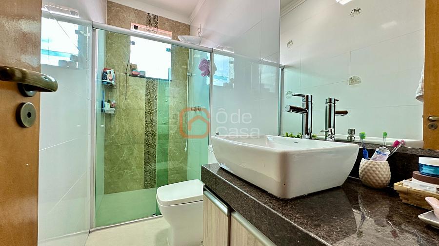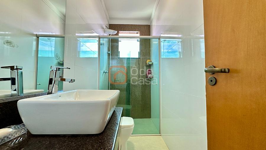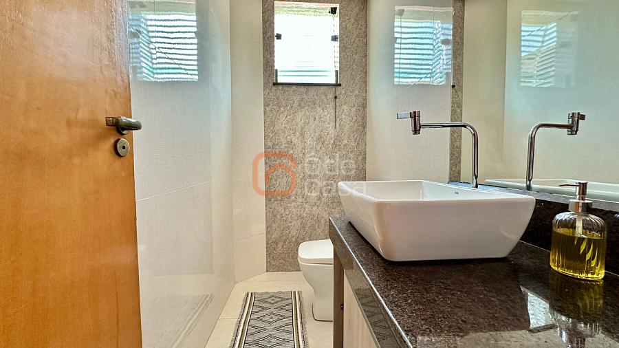 A casa possui aquecimento solar, além de sistema de energia fotovoltaica com 10 placas, trazendo mais economia e sustentabilidade.