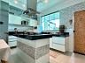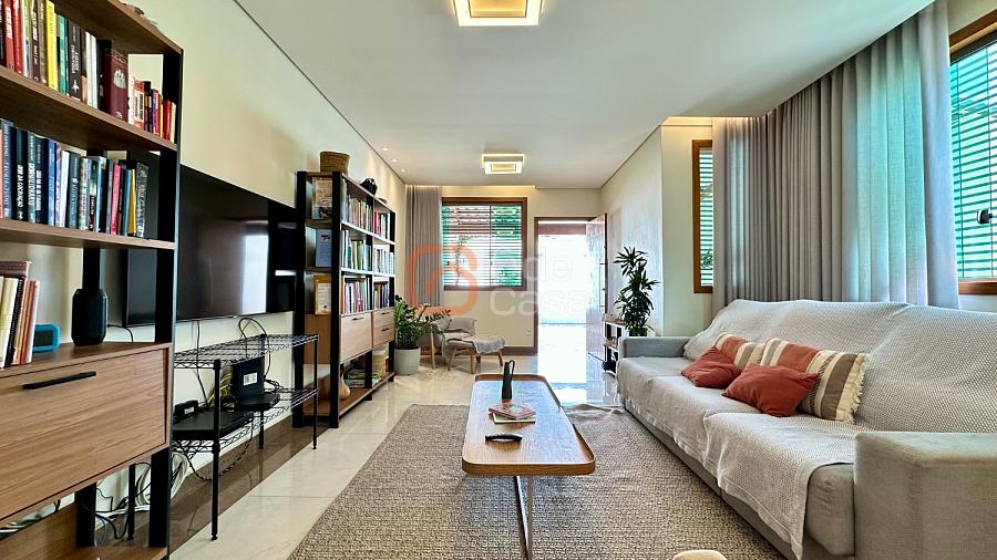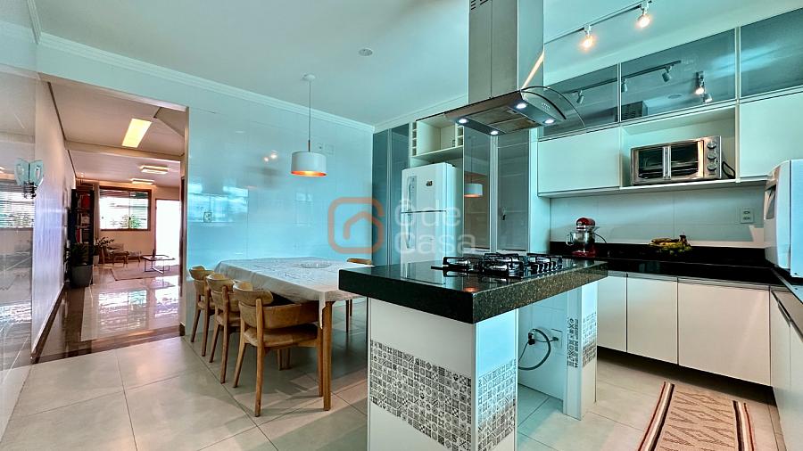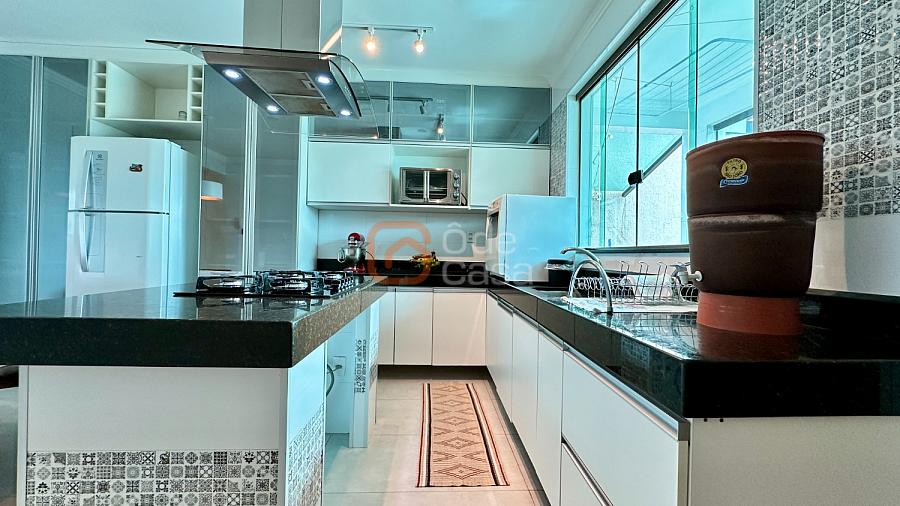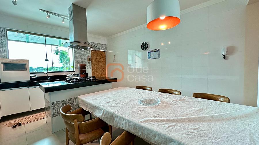 No pavimento principal, uma ampla sala de estar para dois ambientes com lavabo, além de uma cozinha moderna com copa integrada, bancada de ilha e armários planejados. A lavanderia é coberta e totalmente independente.