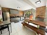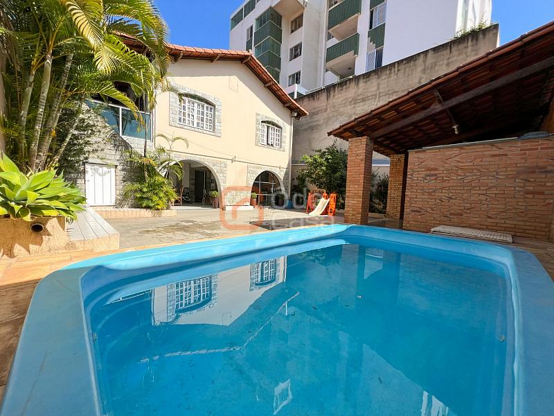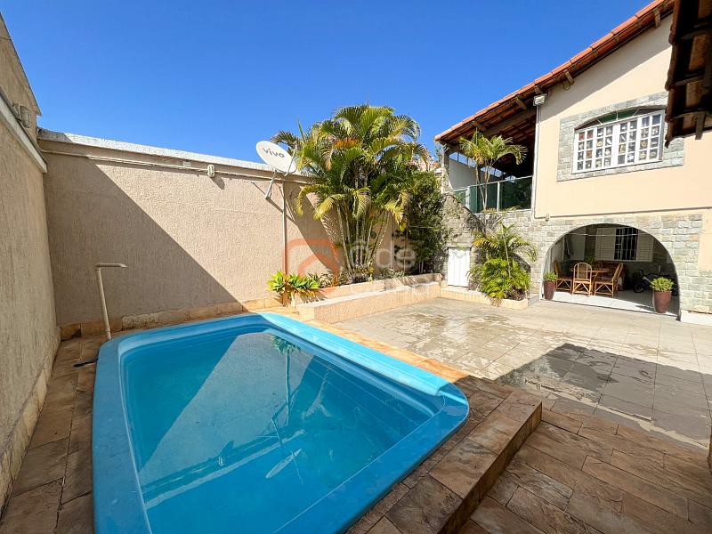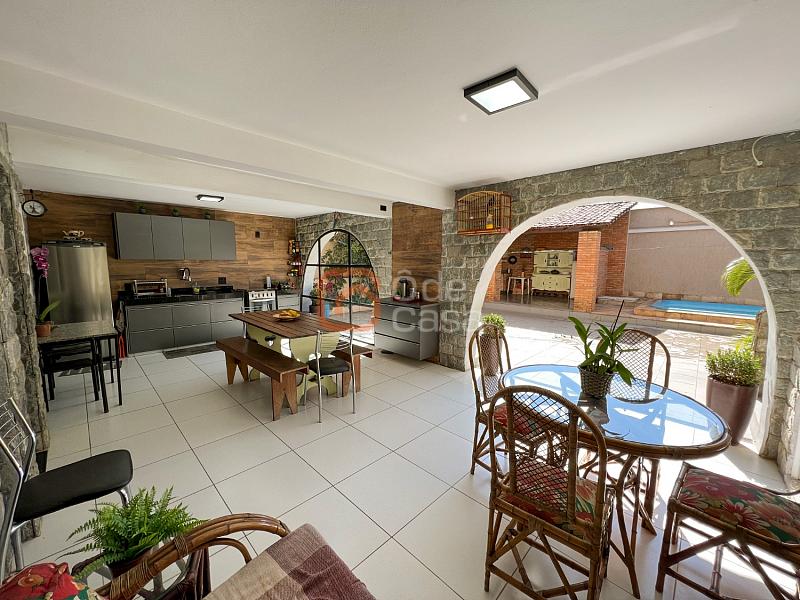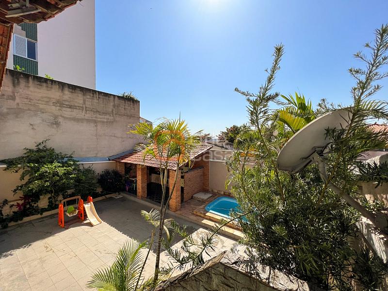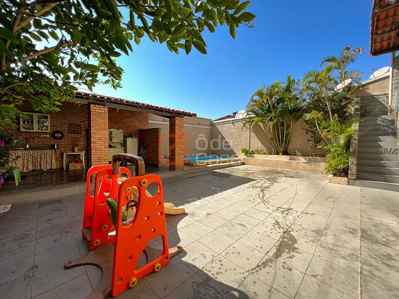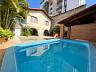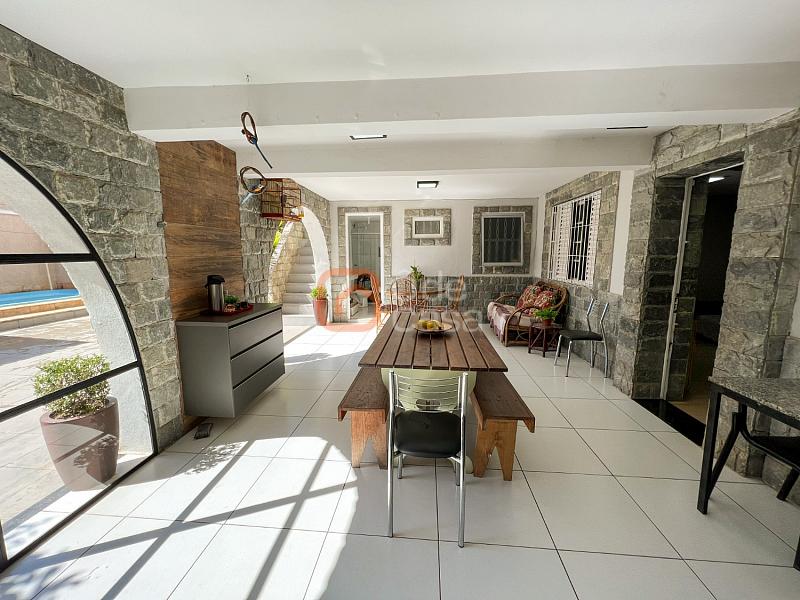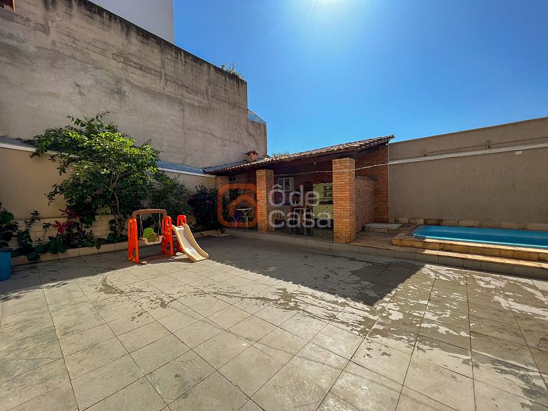 Área externa (abaixo do nível da rua): Amplo quintal com piscina, espaço gourmet coberto com churrasqueira e pia de apoio, cozinha com armários, sala de TV, quarto suíte e banheiro suíte.