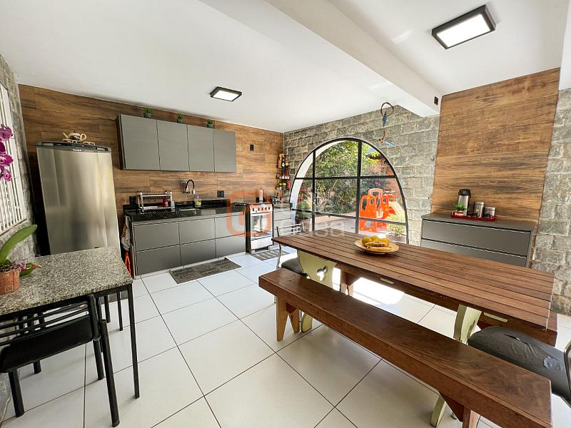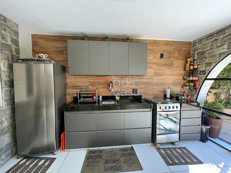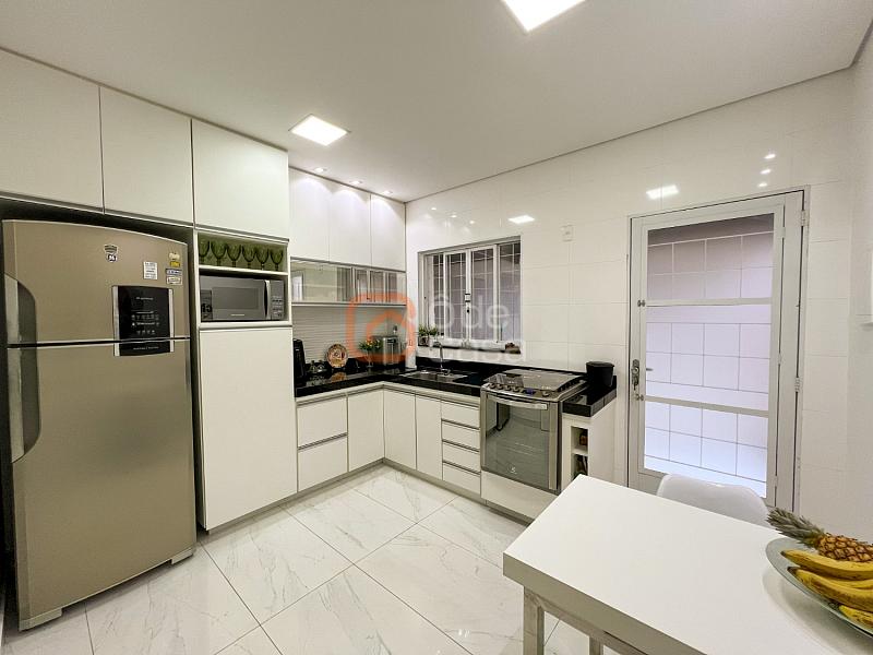 1° Pavimento (nível da rua): Ampla sala de TV, sala de jantar, cozinha ampla com armários, 3 quartos, sendo 1 semi-suíte, banheiro social e área de serviço coberta e independente.