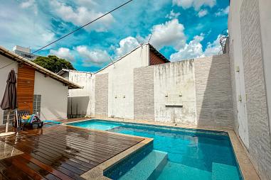 Área externa com acesso lateral ou interno, amplo quintal composto por piscina em alvenaria, cozinha gourmet, dois lavabos, terraço com área disponível para uso alternativo