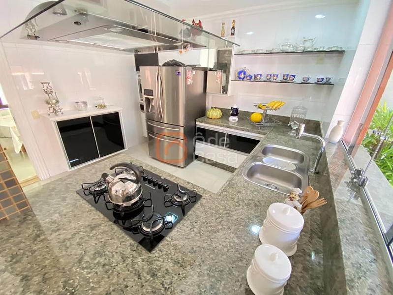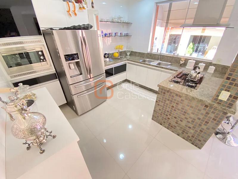 1° Pavimento: Sala para 2 ambientes, jardim de inverno, home office com banheiro, cozinha ampla com península gourmet, bojo duplo, bancadas em granito, copa integrada com cozinha.