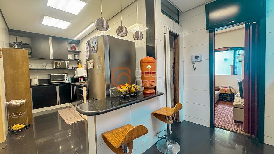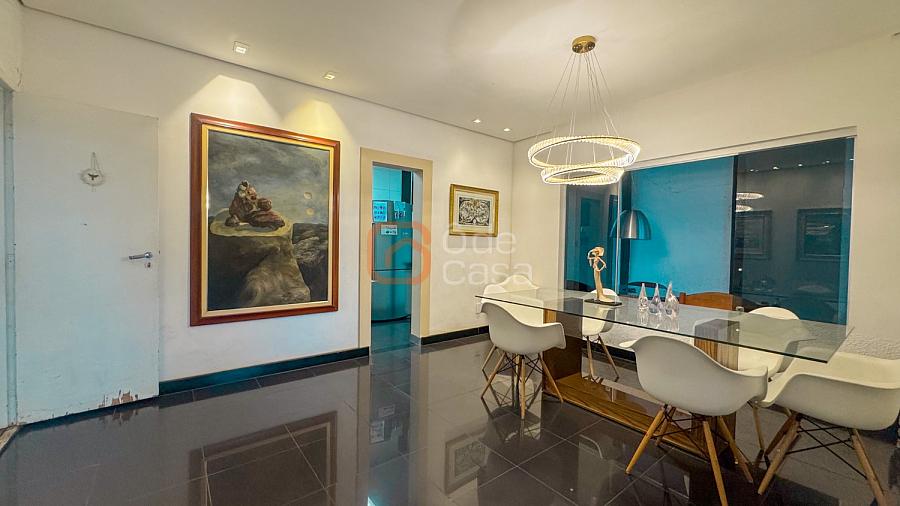 4 quartos amplos, sendo 2 suítes com ar-condicionado, 4 banheiros modernos, sala ampla para 2 ambientes, cozinha totalmente reformada com marcenaria completa e 5 vagas de garagem