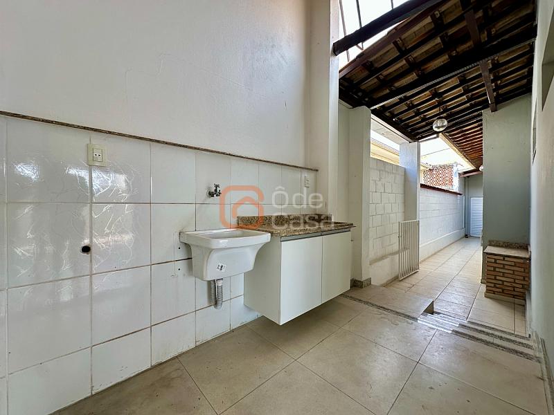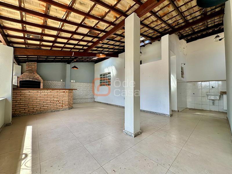 Área externa conta com espaço gourmet com churrasqueira e bancada de apoio, DCE completa e área de serviço coberta.