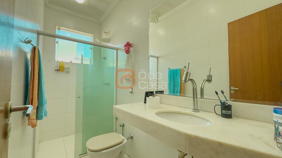 Já no 2º pavimento, dispõe de 3 quartos, sendo uma suíte com varanda, uma suíte adicional e um quarto com armário planejado, além do banheiro da suíte e um banheiro social.
