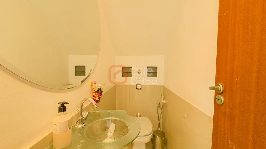 No 1º pavimento, a casa conta com sala de televisão, sala de estar e jantar, cozinha com armários planejados, despensa com armários, lavabo e um espaço gourmet com churrasqueira e planejado, além de 3 vagas de garagem.