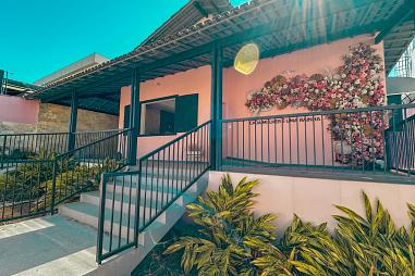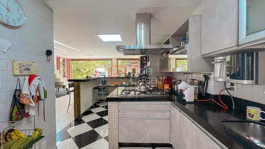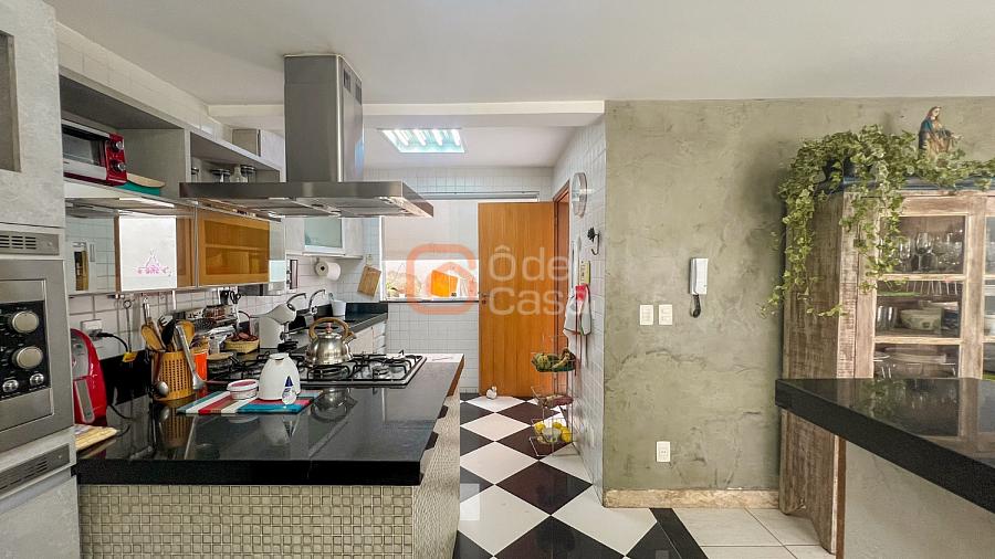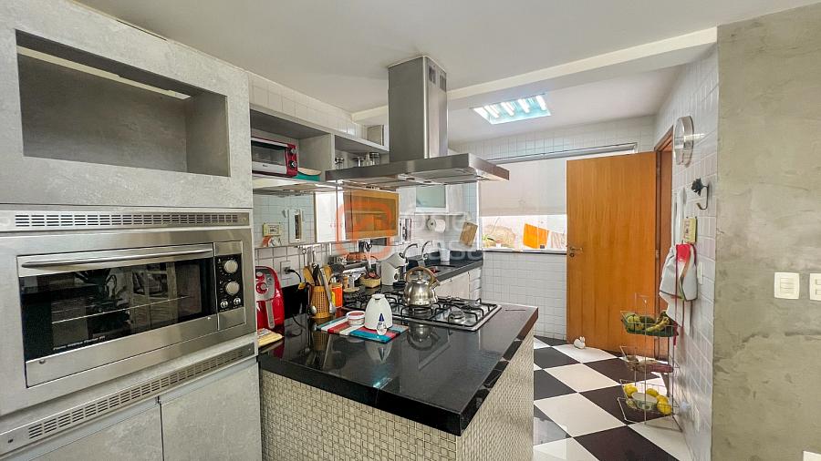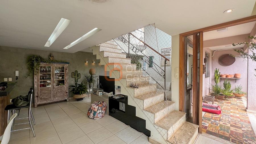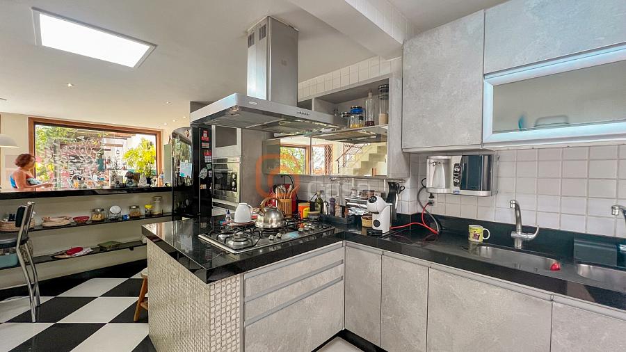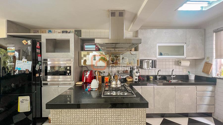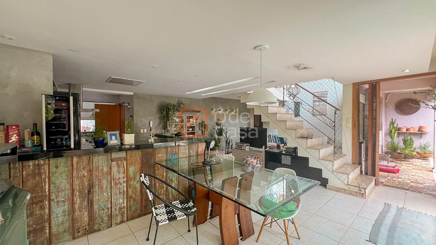 1° Pavimento: sala para 2 ambientes com pé direito duplo, sala de jantar, cozinha equipada com armários, coiffa, cooktop e bancada em granito, área de serviço independente e coberta. 2 quartos, sendo 1 com jardim de inverno, e 1 banheiro social.