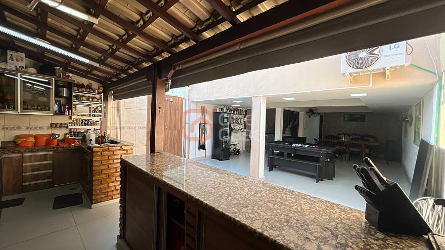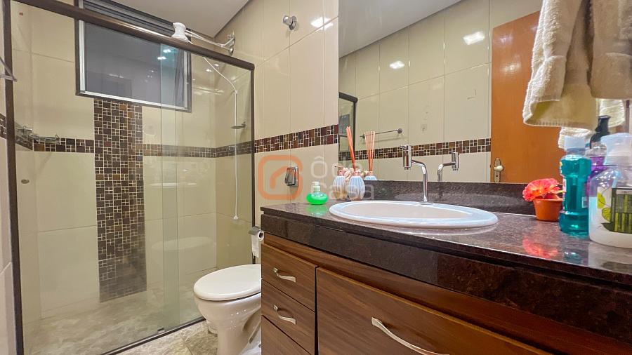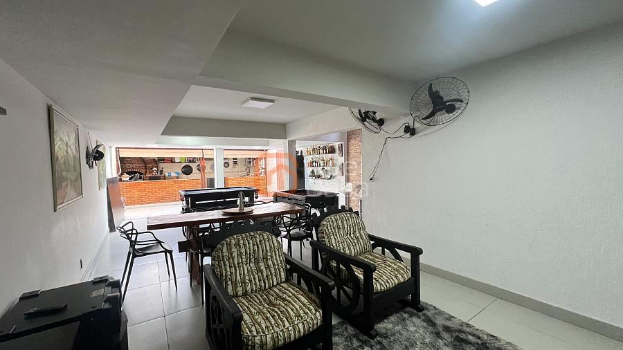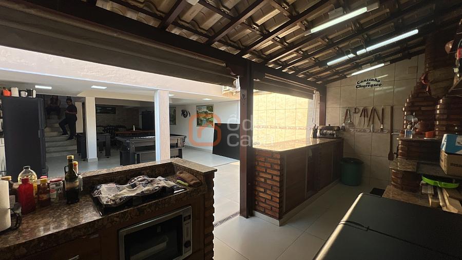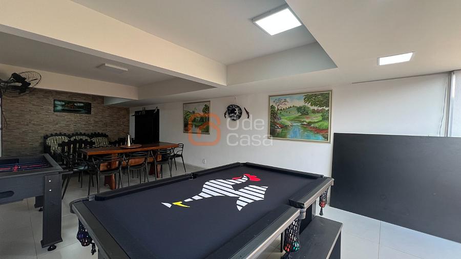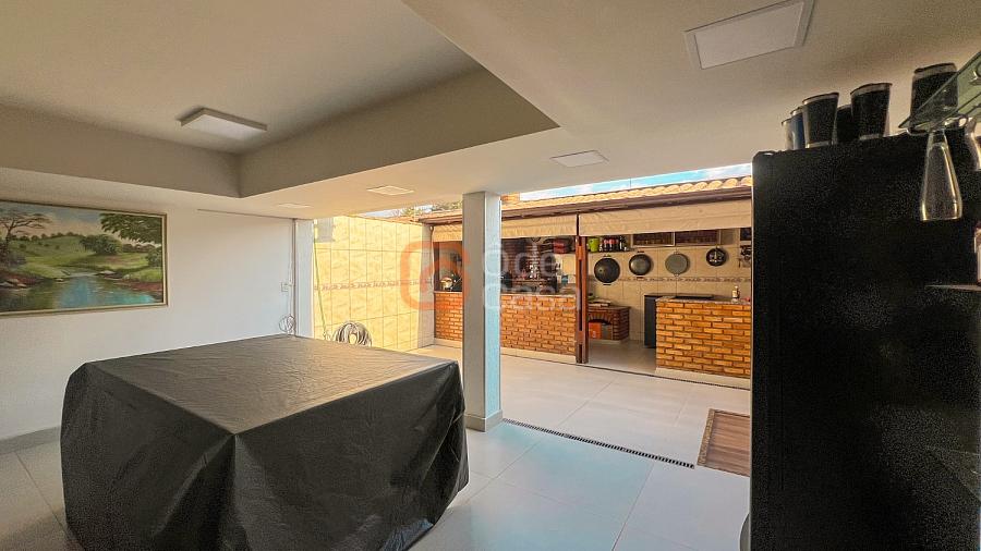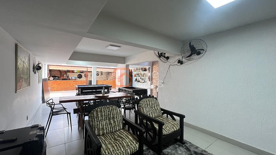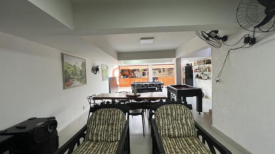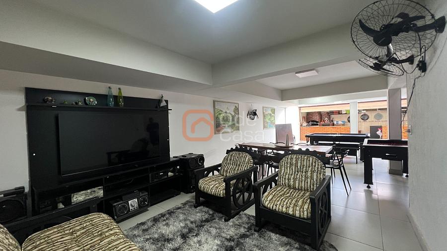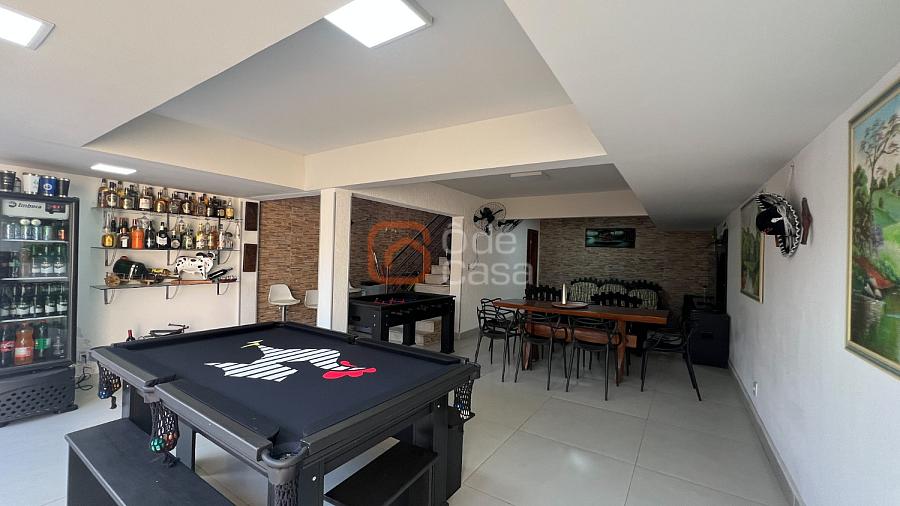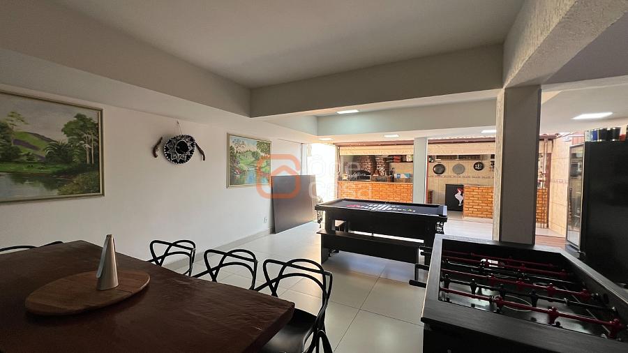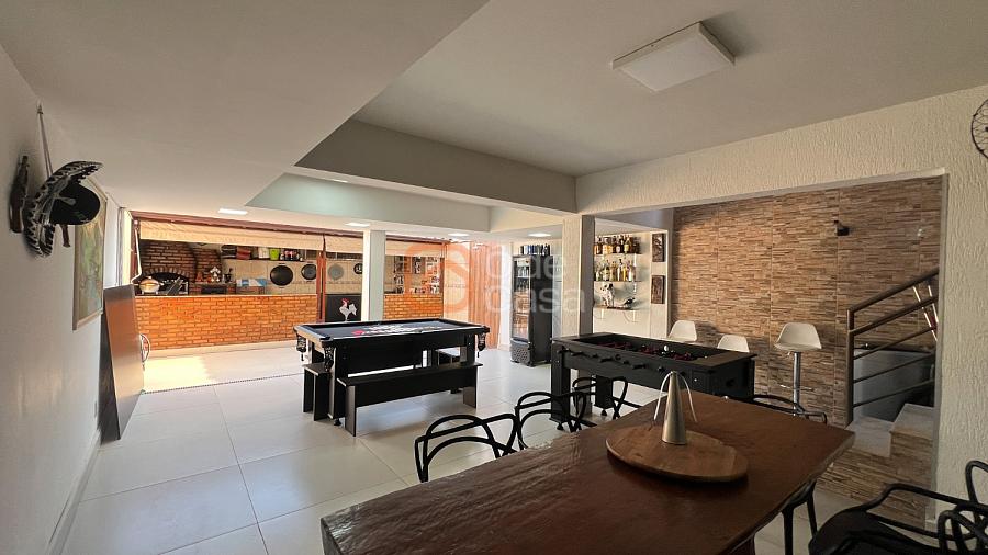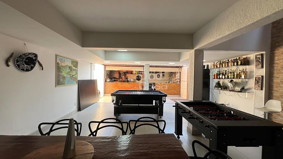 Na parte inferior, um completo espaço de lazer com salão de festas, salão de jogos, lavabo, espaço gourmet com churrasqueira, forno, fogão a lenha, armários planejados e ducha – perfeito para receber amigos e familiares.