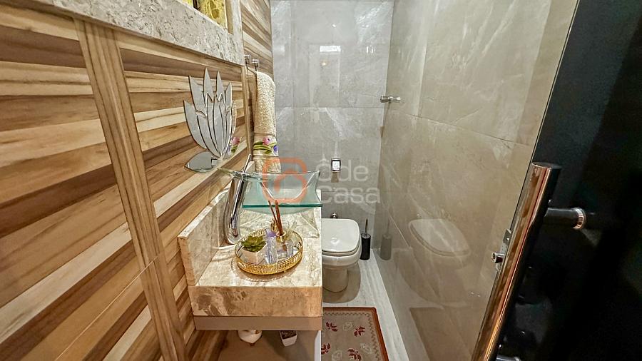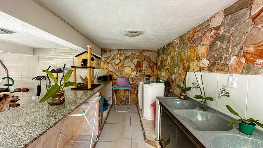 Área externa: Piscina, ducha, sauna, lavabo, área gourmet coberta com churrasqueira e armários. Salão, área de serviço independente e quartinho de despejo.