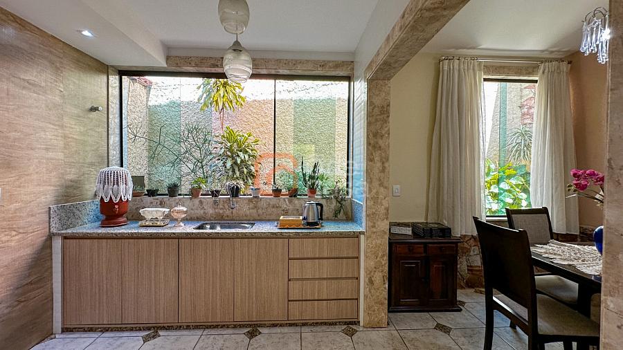 1° Pavimento: Ampla varanda na frente da casa, jardim, sala para dois ambientes, lavabo, cozinha, sala de jantar.