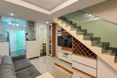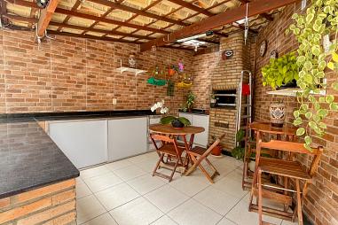 1° pavimento: Sala de TV, cozinha com armário, banheiro, área externa semi-coberta com churrasqueira e área de serviço;