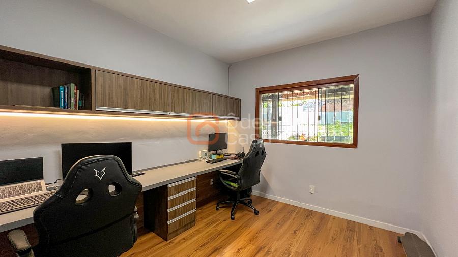Ampla sala para 2 ambientes, sala de jantar, cozinha com armários e bancadas em granito, banheiro social 1 com bancada em mármore, cuba da pia esculpida. 3 quartos com armários planejados, sendo 2 suítes. Área de serviço coberta e independente
