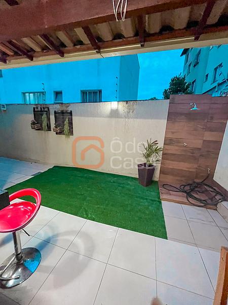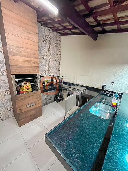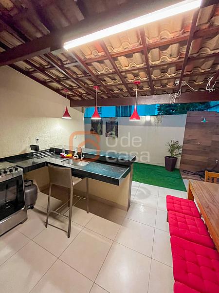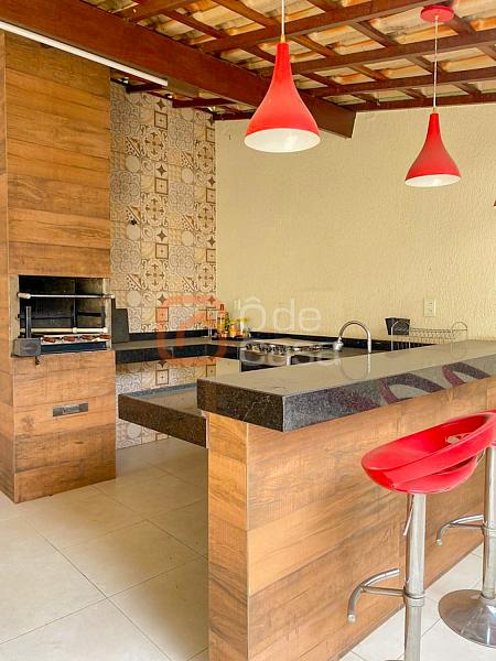 Área externa com espaço gourmet com churrasqueira e ducha.