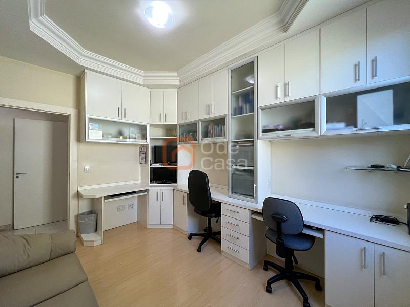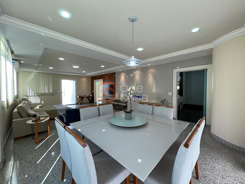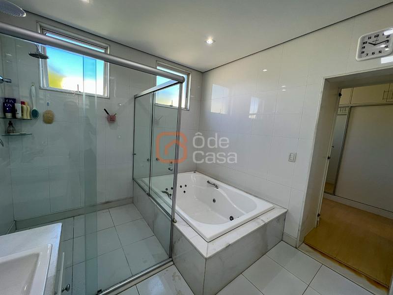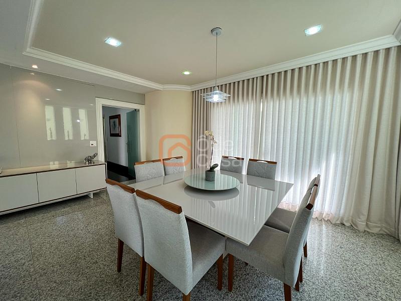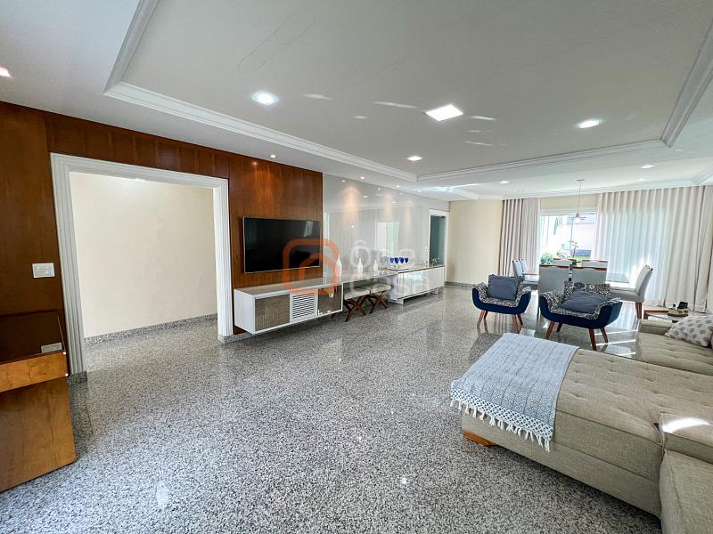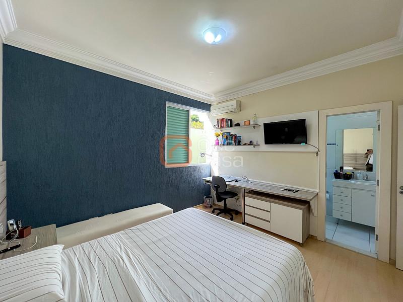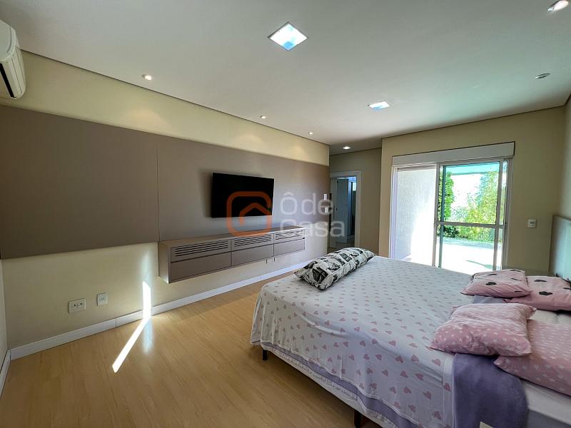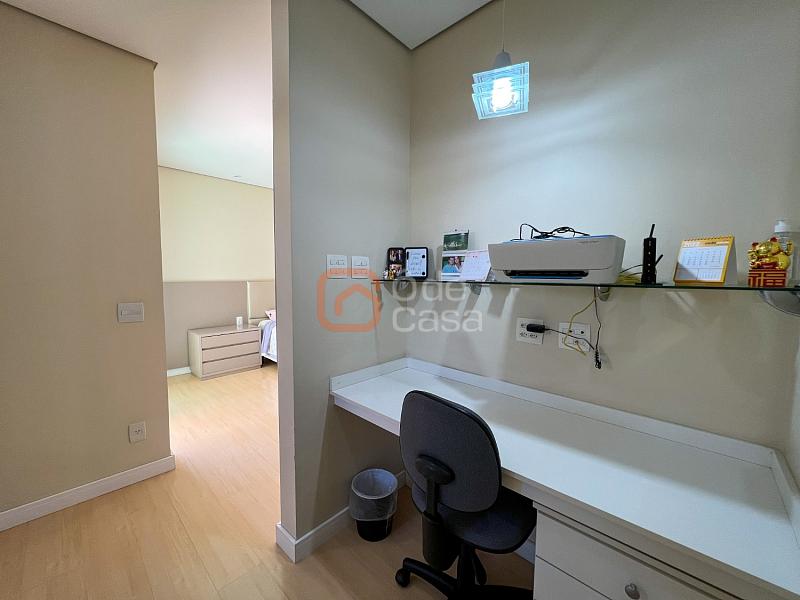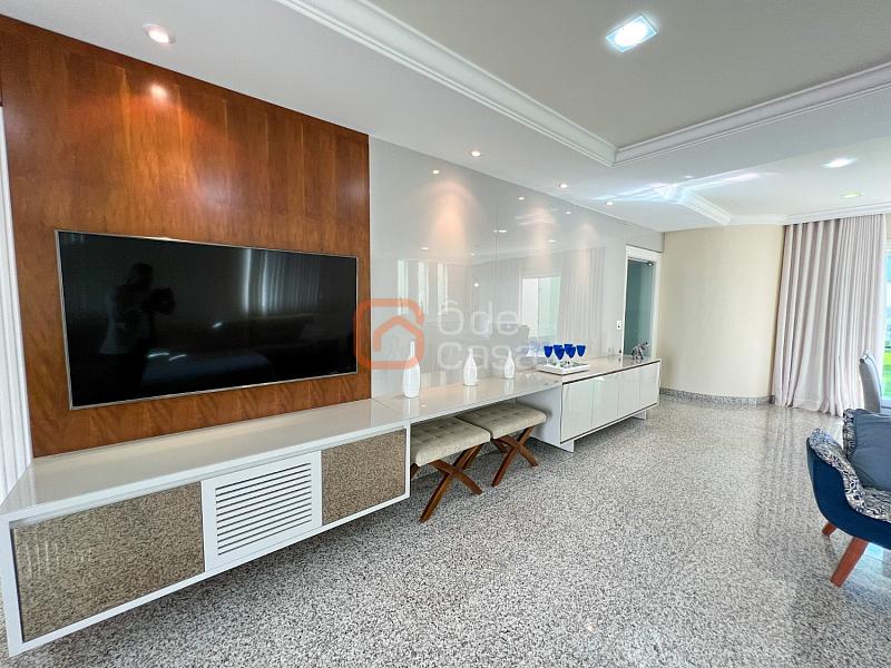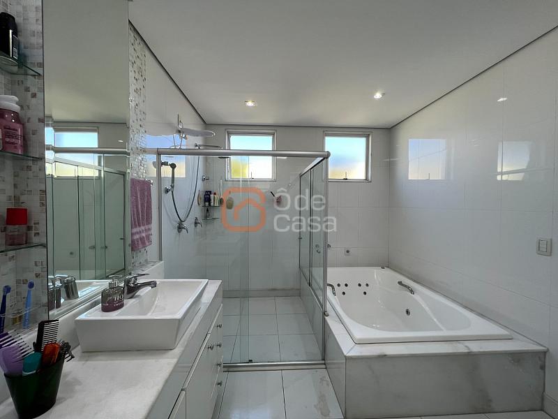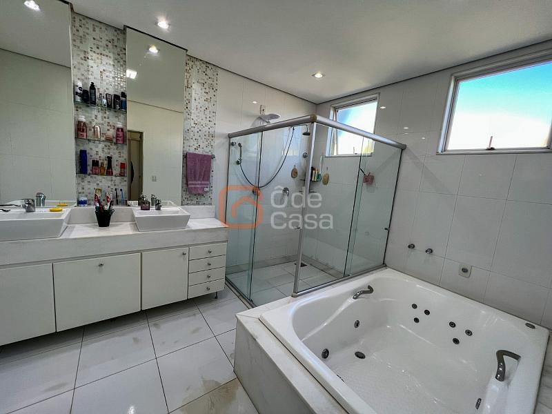 Ampla sala para 2 ambientes com iluminação planejada, cozinha com armários e despensa, lavanderia independente e DCE completa, 5 quartos, sendo 4 suítes, a master com banheira de hidromassagem, closet, pia dupla e saída para área externa. Um dos quartos planejado como home office.