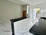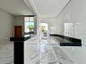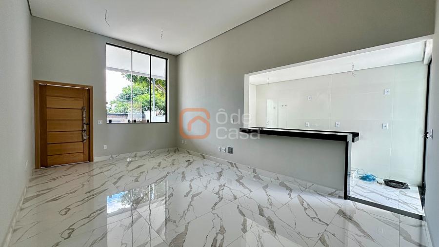 Ampla sala para 2 ambientes com pé direito duplo, cozinha americana, 3 quartos, sendo 1 suíte com closet, e banheiro social. Área externa conta com espaço gourmet com lavabo e área de serviço.