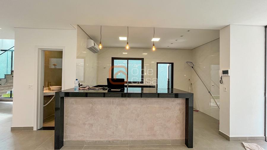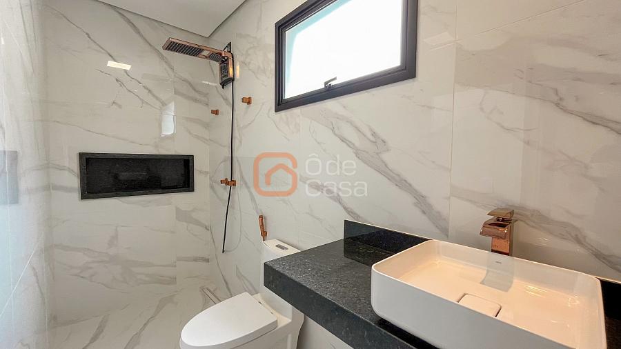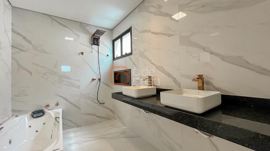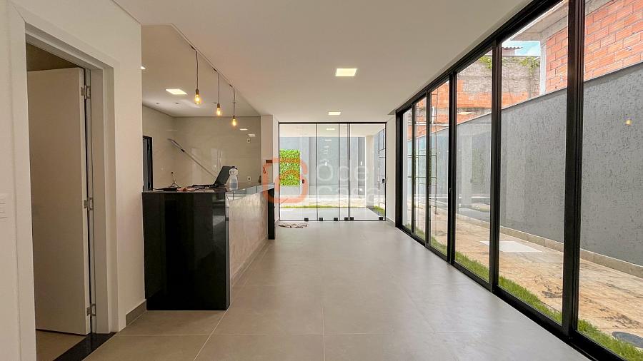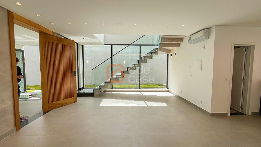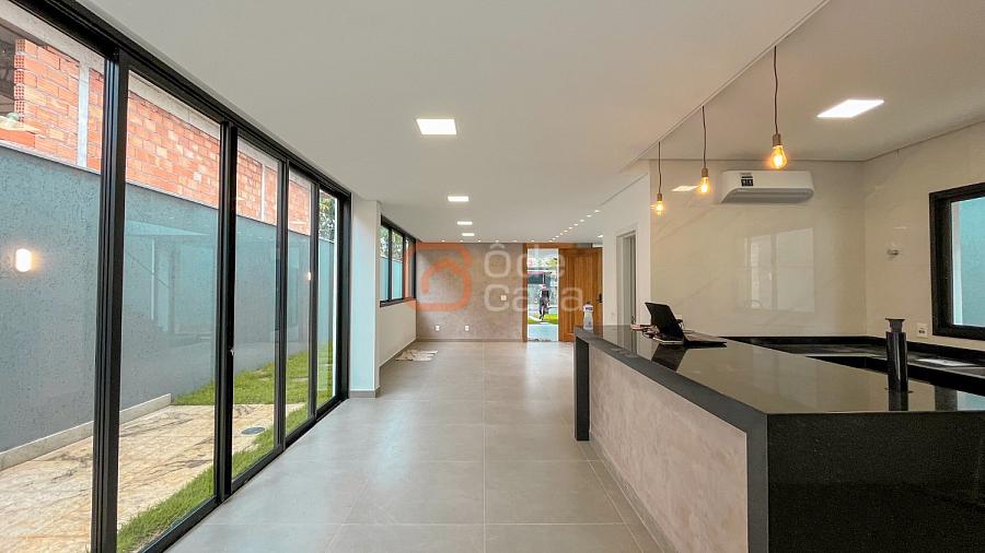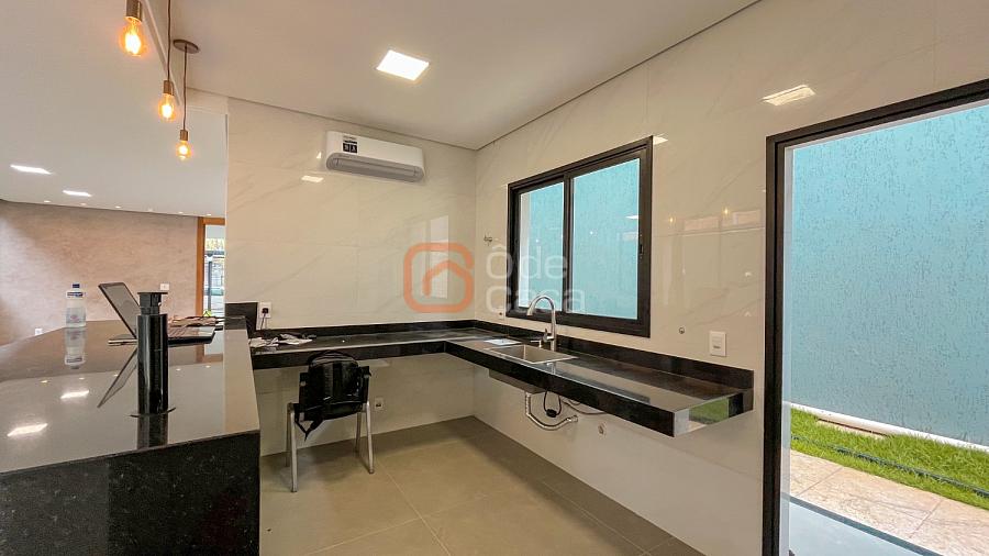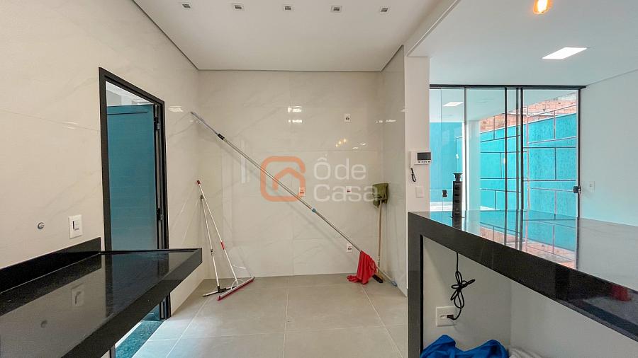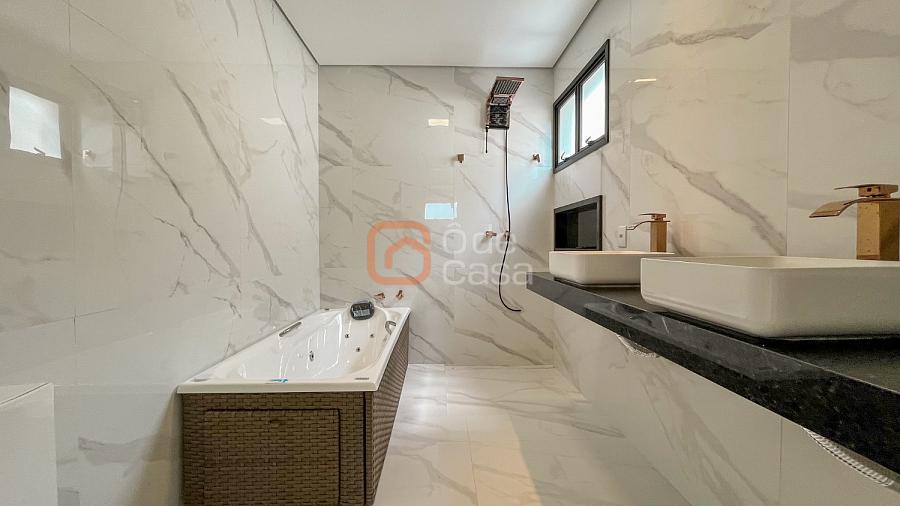 Quatro vagas cobertas e livres, espelho d’água, depósito, sala de TV e sala de jantar integradas, lavabo, cozinha americana, lavanderia, área gourmet com churrasqueira, banheiro externo e piscina.