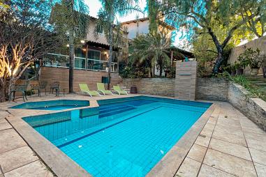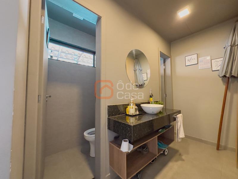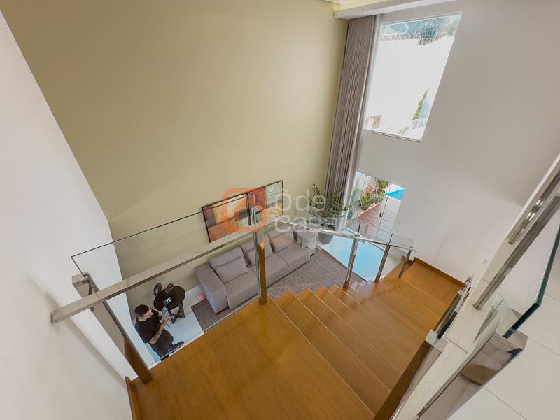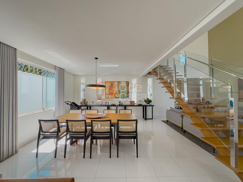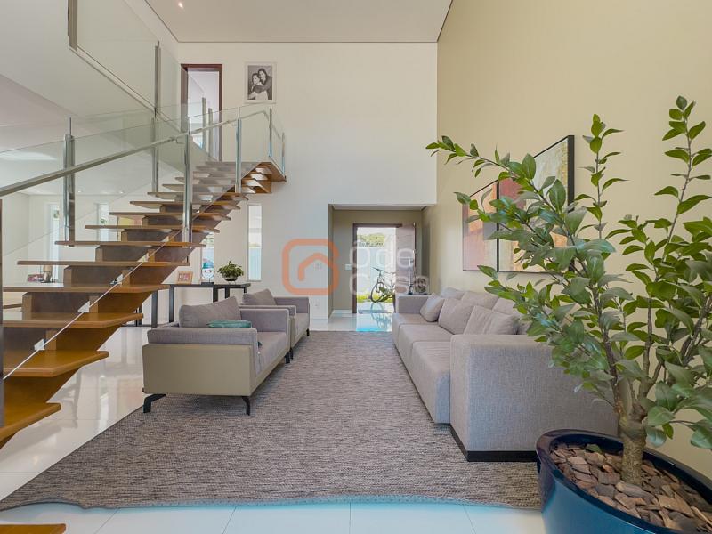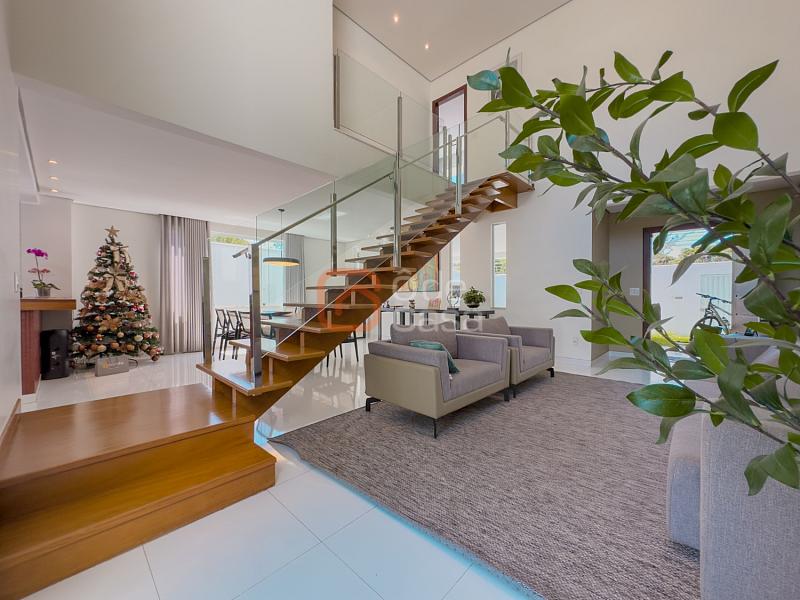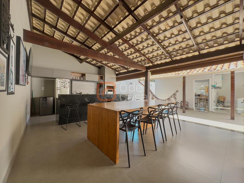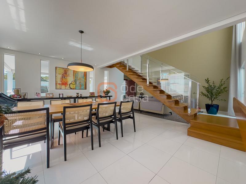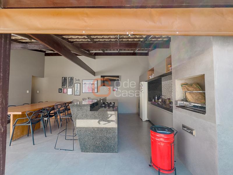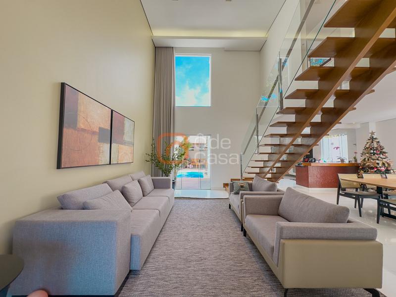 1° pavimento: Ampla sala para dois ambientes com pé direito duplo, cozinha americana com armários e eletrodomésticos embutidos, despensa, lavabo, área de serviço, área gourmet coberta com churrasqueiro, dois lavabos;