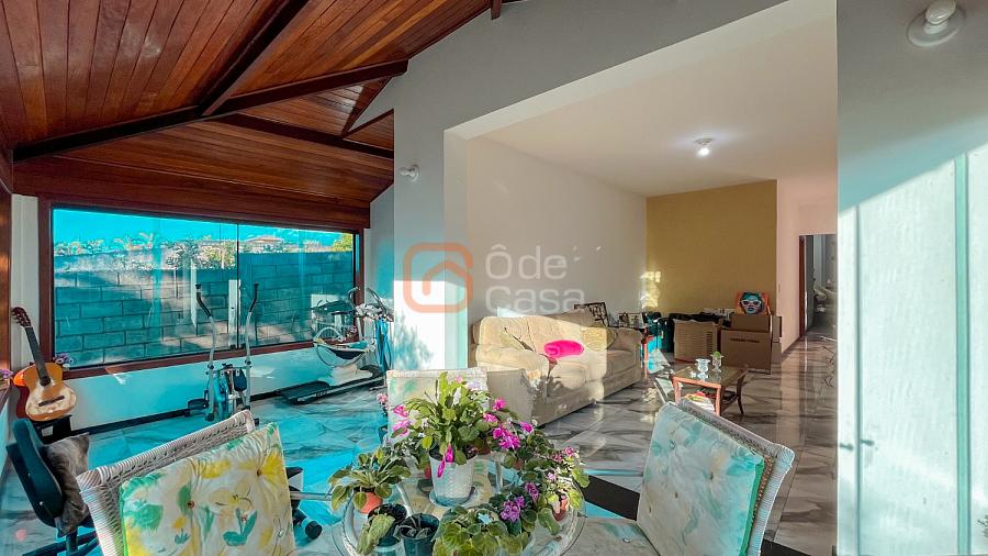 1° pavimento: Sala de estar conjugada com varanda fechada em blindex, sala de jantar, sala de TV, cozinha com armários, área de serviço, DCE completa. Parte íntima com 4 quartos com armários, sendo 1 suíte com closet, e banheiro social.