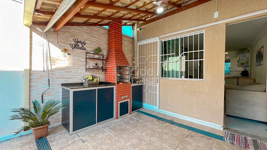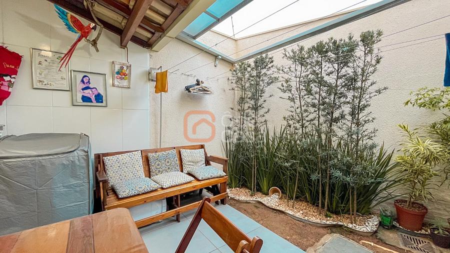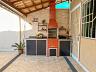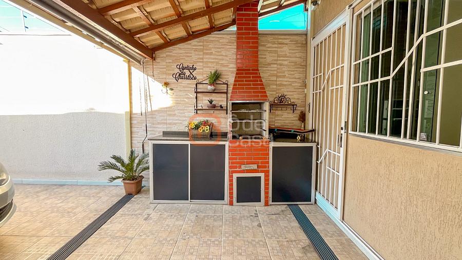 1° Pavimento: Sala para dois ambientes, lavabo, cozinha com armários, área de serviço independente, espaço externo nos fundos com jardim e parte coberta com teto retrátil, garagem para 2 carros e espaço gourmet com churrasqueira.