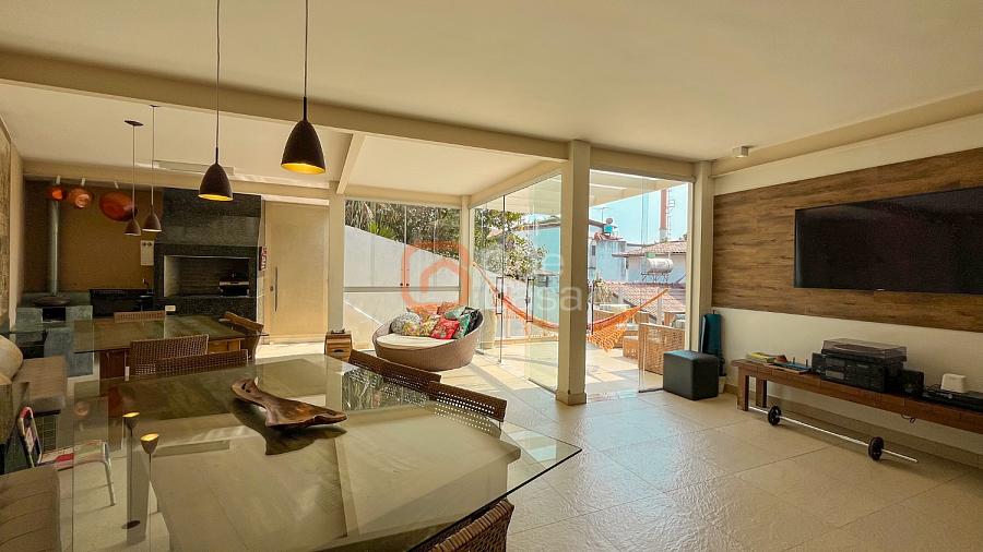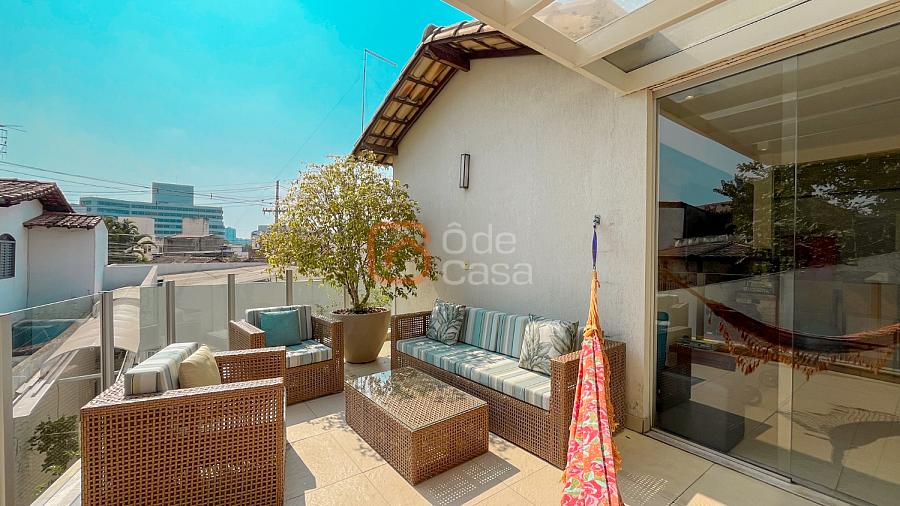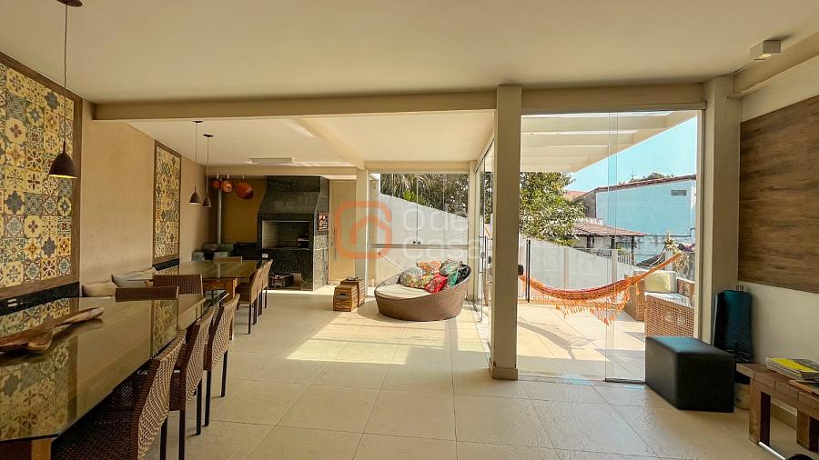 2° Pavimento: Terraço com espaço gourmet com churrasqueira e fogão a lenha coberto, cozinha, americana com armários, despensa, área de convivência descoberta, 1 quarto e 2 banheiros