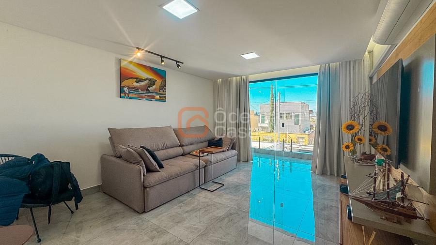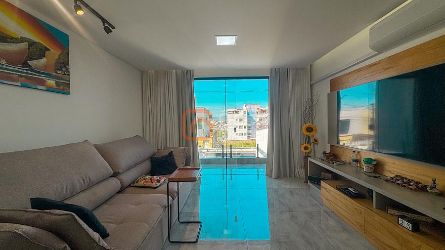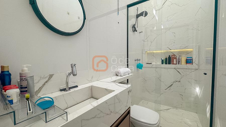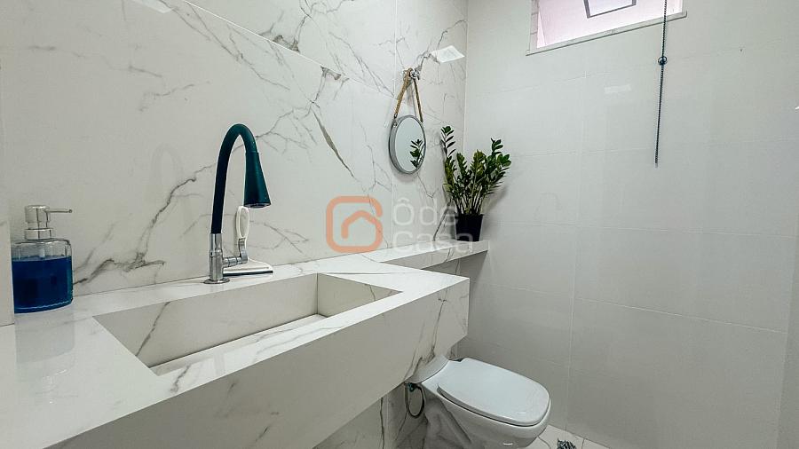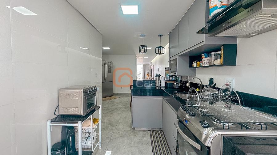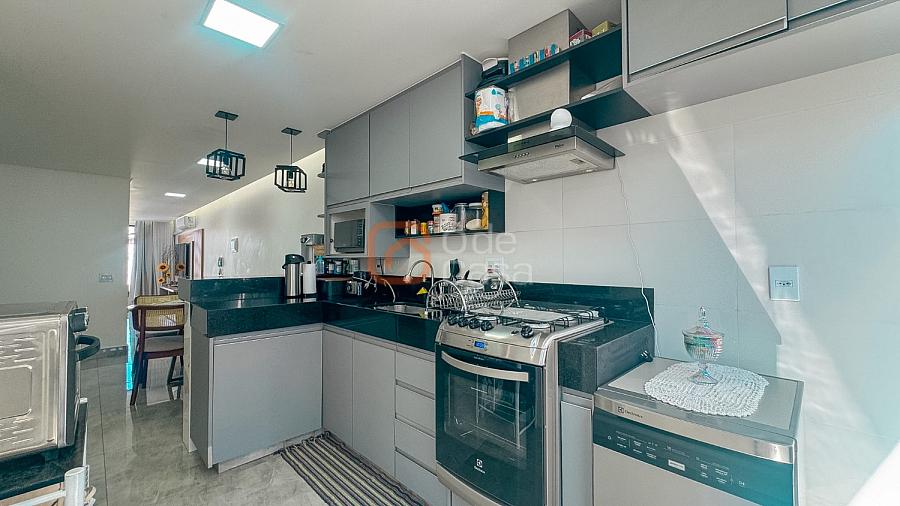 2° PAVIMENTO: Sala de TV com ar-condicionado, varanda, sala de jantar, cozinha americana com armários e fogão e coifa, lavabo, área de serviço independente, quintal coberto com e parte descoberta.