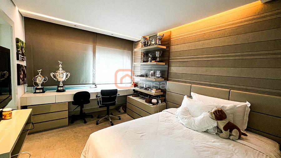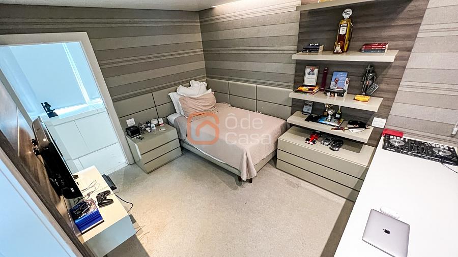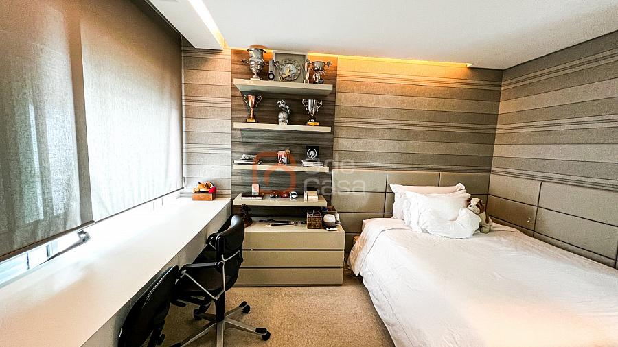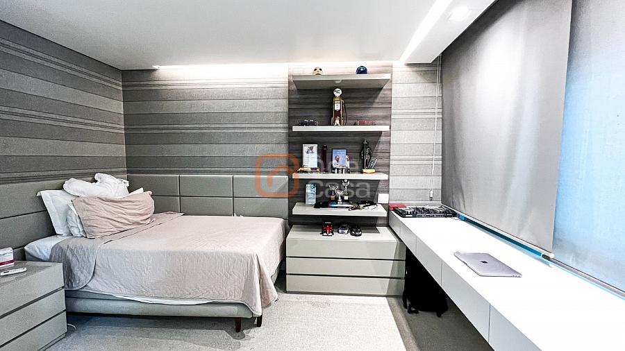 2° Pavimento: Sala ampla com corredor com armários, rouparia no corredor dos quartos, 4 suítes, sendo 3 com closet, sendo a suíte master com closet amplo, varanda frontal e banheiro com banheira de hidromassagem e pia dupla.