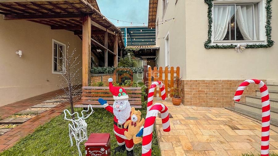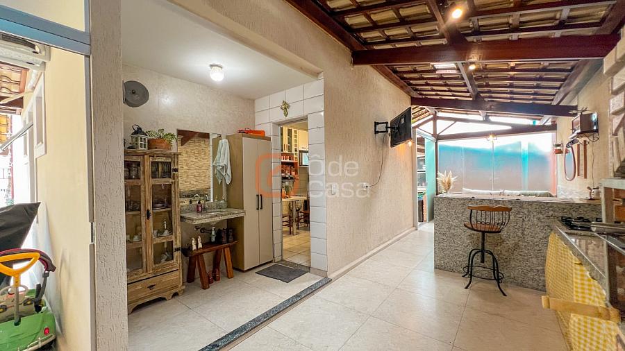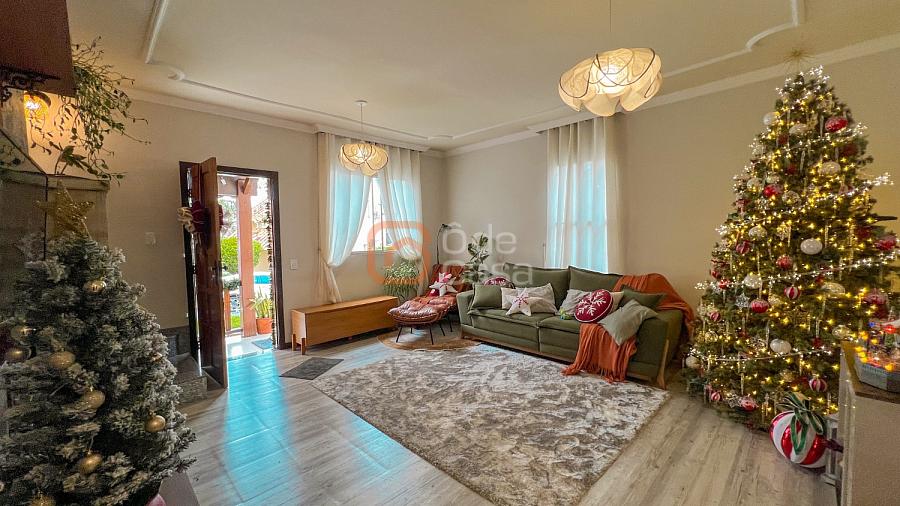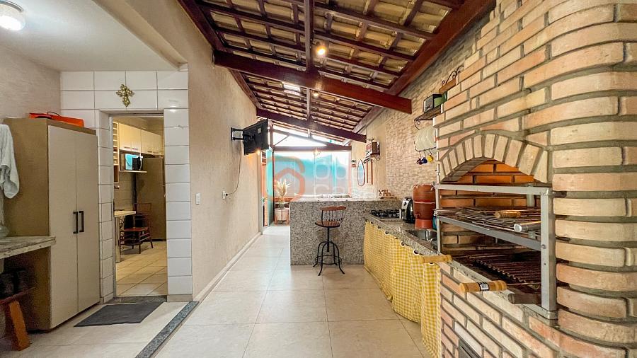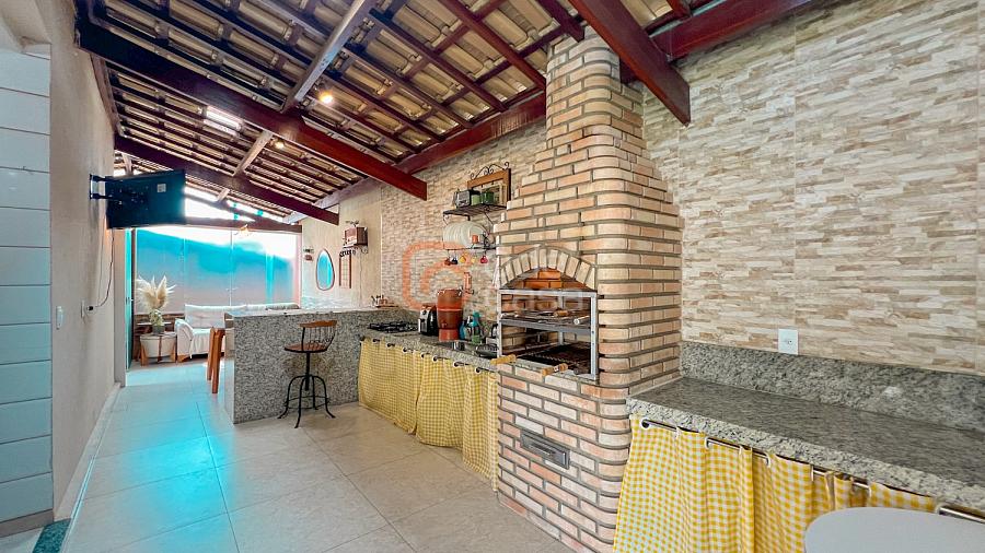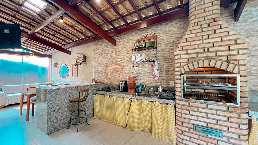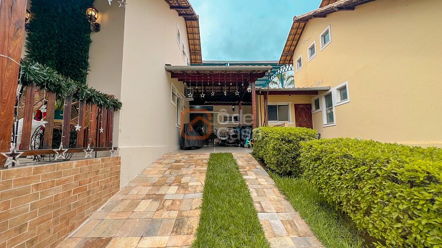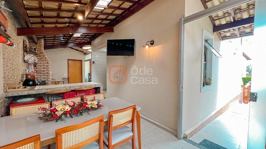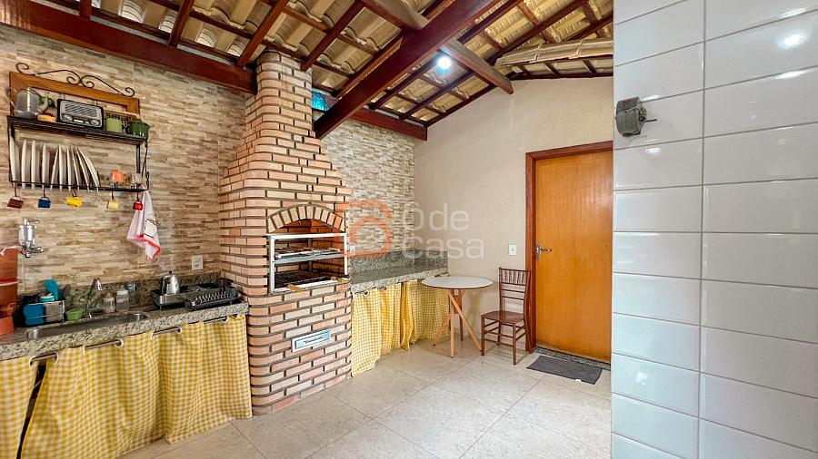 1° Pavimento: Ampla sala para 2 ambientes, lavabo, cozinha com armários, área externa com espaço gourmet coberto e aconchegante e jardim frontal gramado