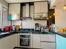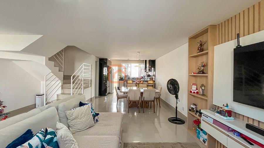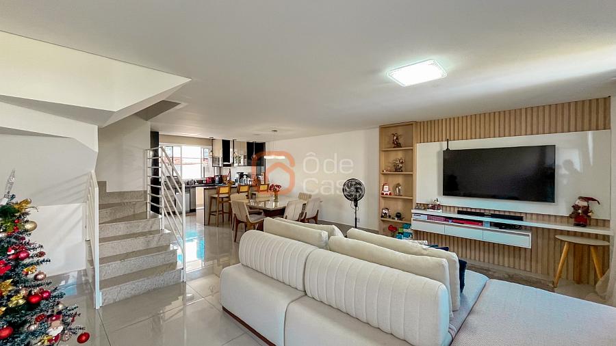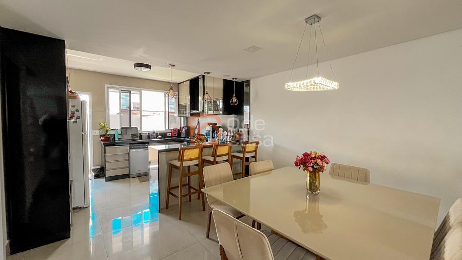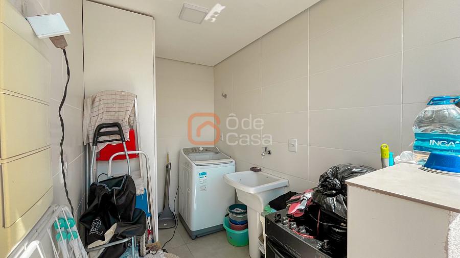 1º Pavimento: Sala para 3 ambientes, garagem para 2 carros, cozinha americana com bancadas em granito e armários planejados , lavabo com bancada em granito e cuba da pia em apoio, área de lavanderia coberta na área externa, área externa nos fundos do imóvel com aproximadamente 35m²;