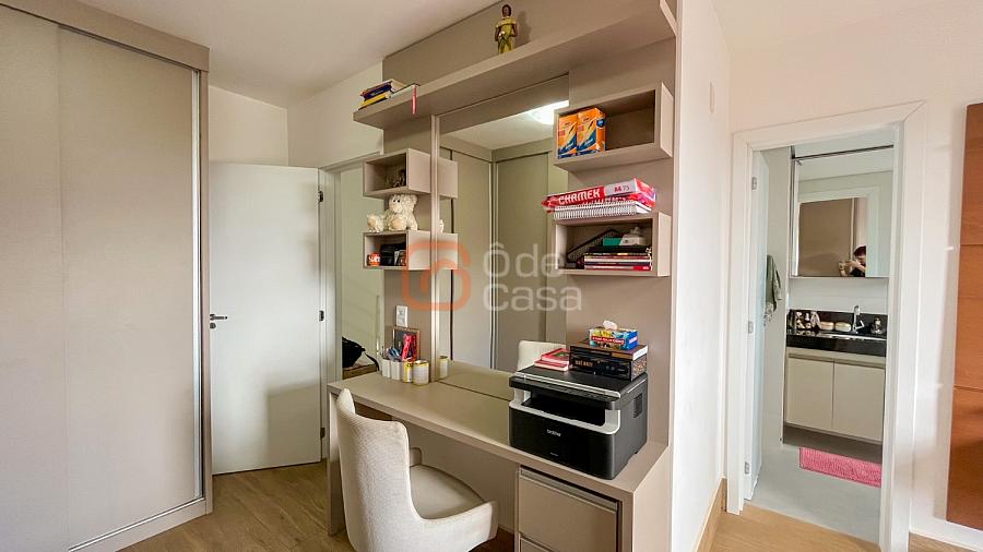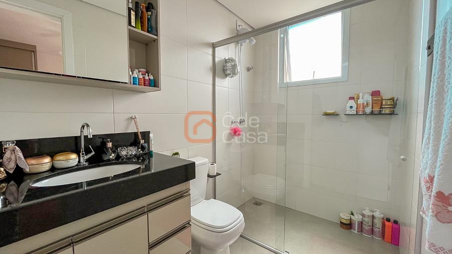 2º Pavimento: 3 Quartos sendo 1 suíte com varanda e closet, todos com armários planejados, banheiros da suíte e social com bancada em granito e armários planejados.