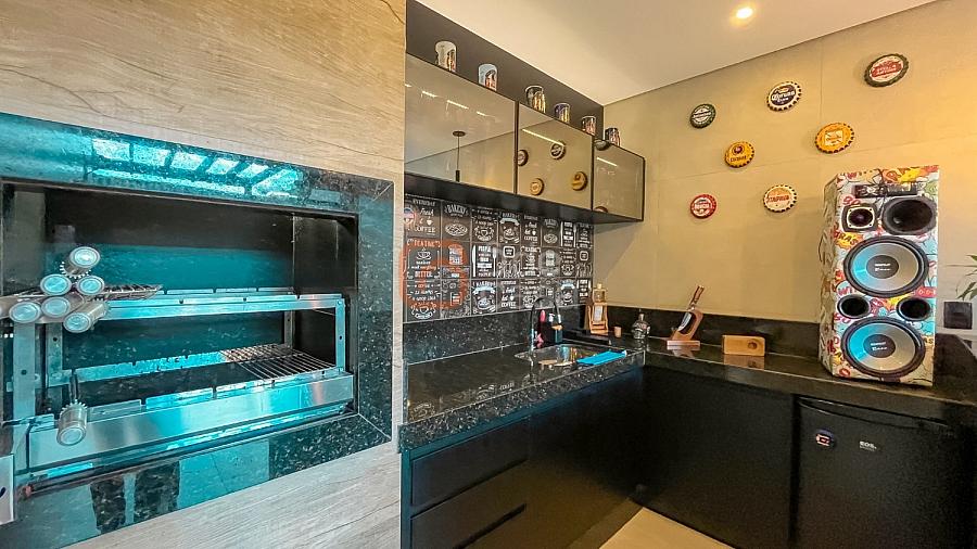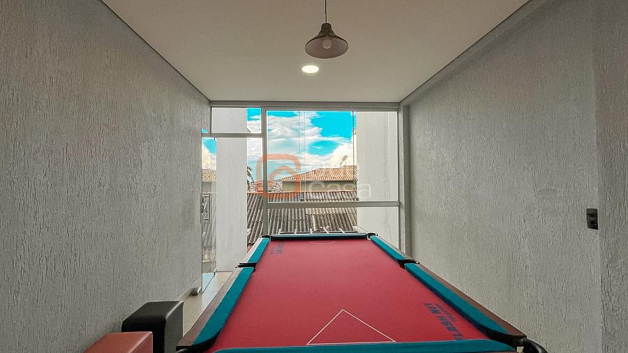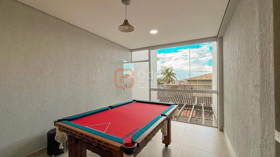 1° PAVIMENTO: Ampla sala para 2 ambientes, lavabo, cozinha americana com armários, espaço gourmet com churrasqueira e bancada de apoio, sala de jogos e área de serviço coberta.