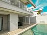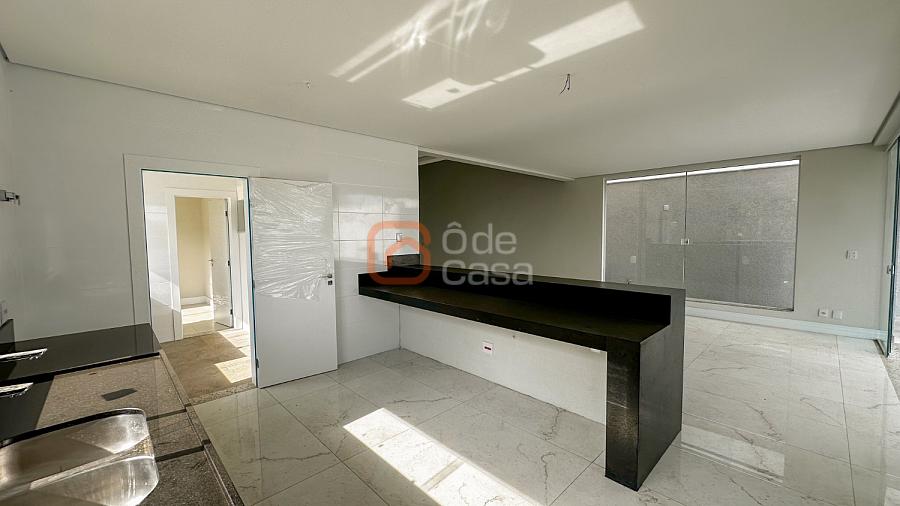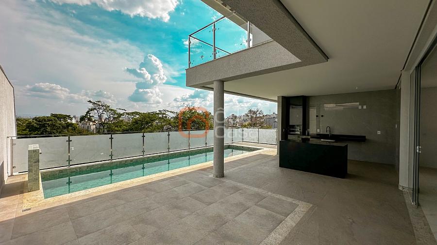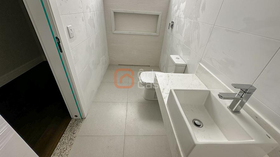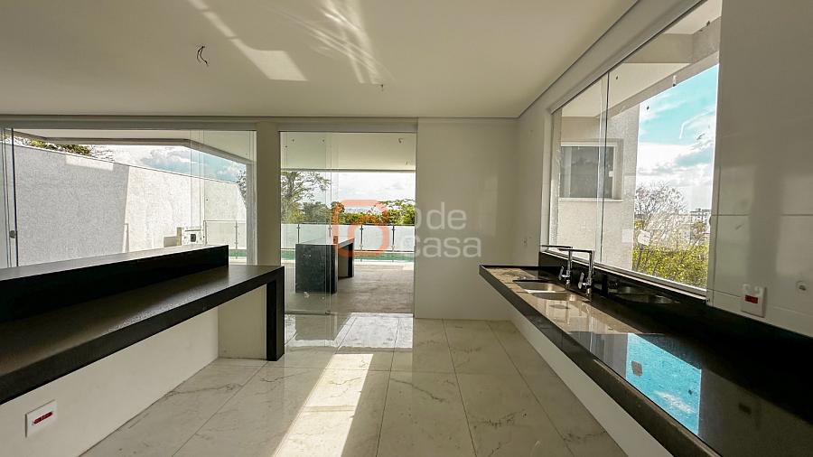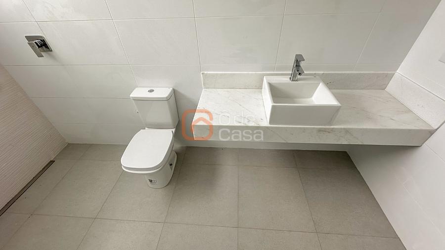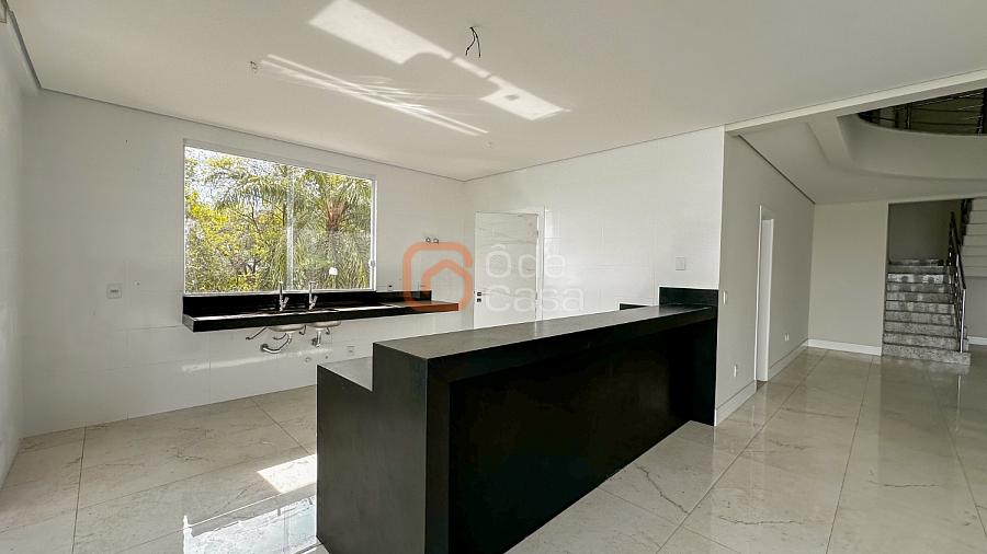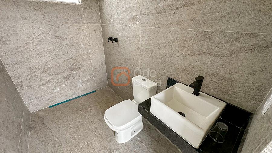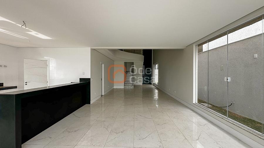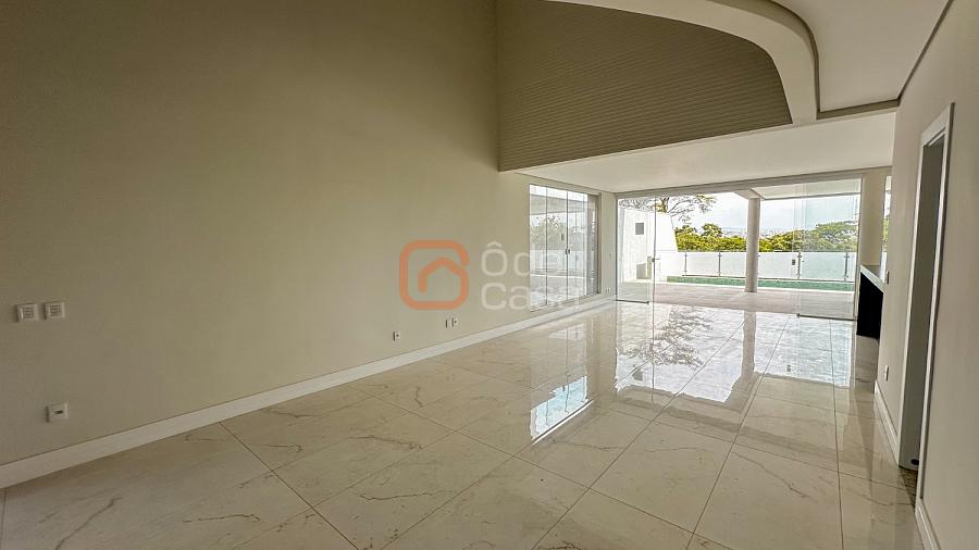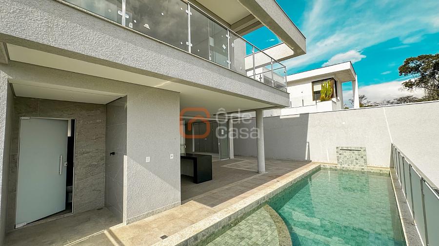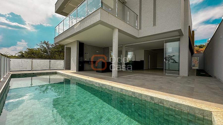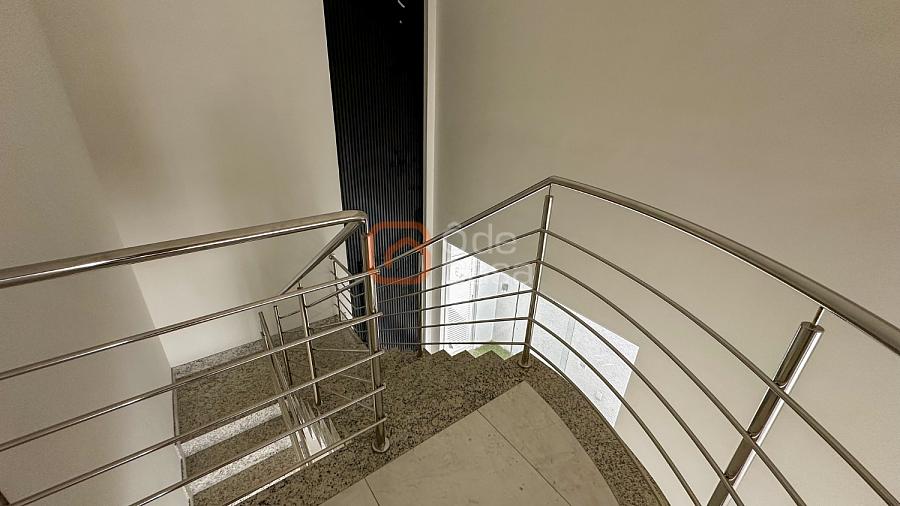 1° Pavimento: Porta com 6m² de altura, sala com pé direito duplo, lavabo, cozinha americanA integrada com área gourmet, piscina e cascata. Banheiro social com acessibilidade. Área de serviço, despensa, e DCE completo.
