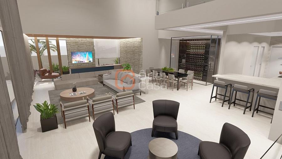 1° Pavimento: Sala com três ambientes integrados e varanda, 1 suíte térrea, lavabo, espaço adega, cozinha espaçosa e moderna, com ótima área de circulação, despensa e dependência de empregada e lavanderia com entrada independente.