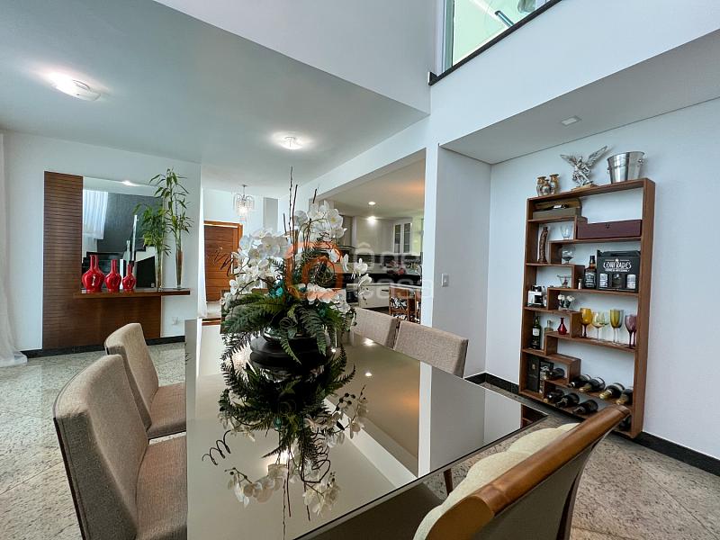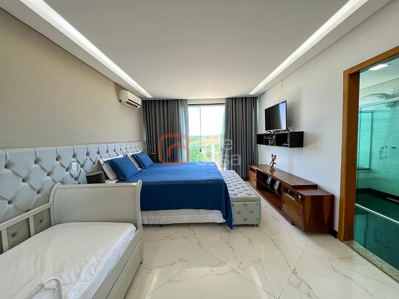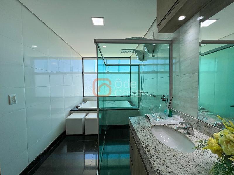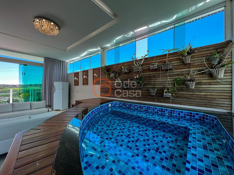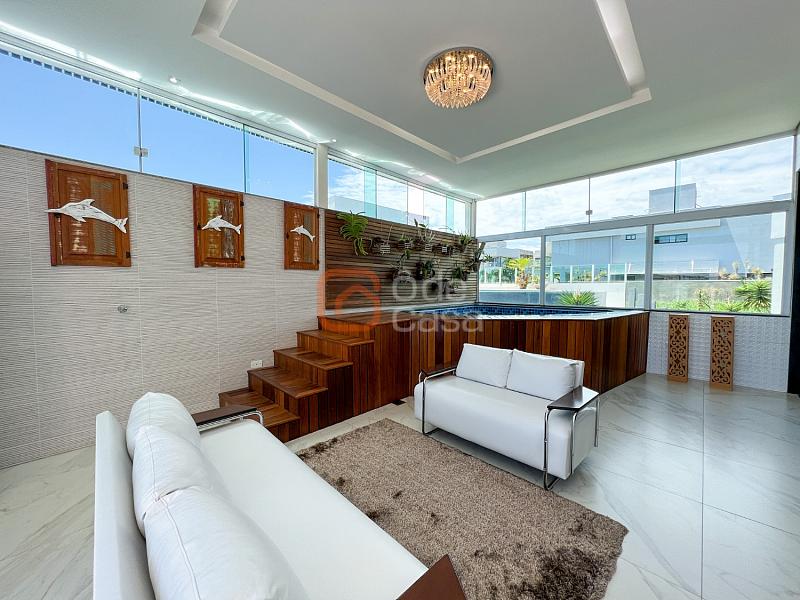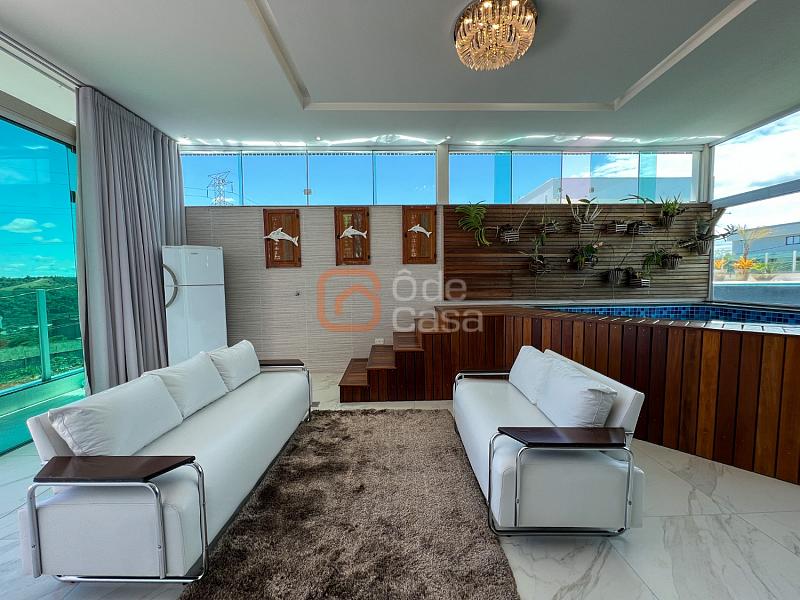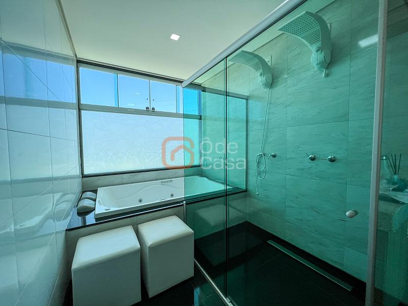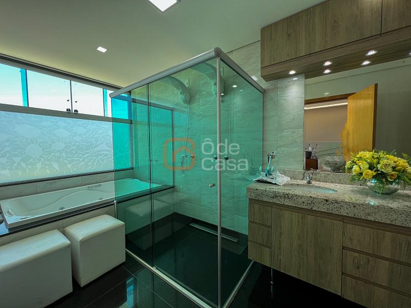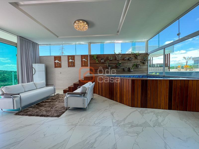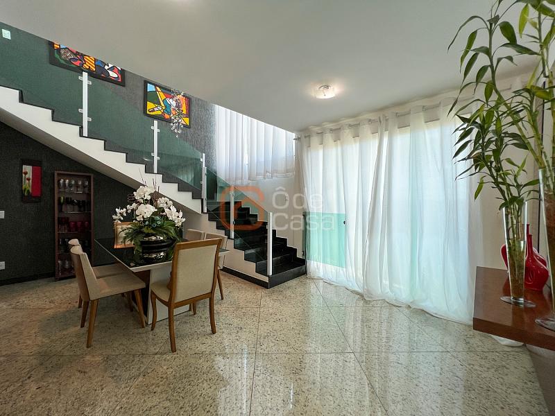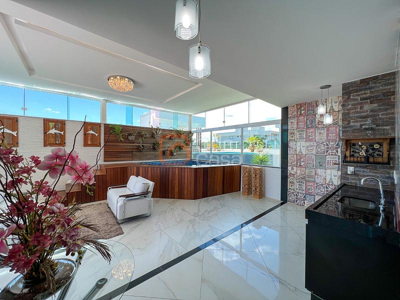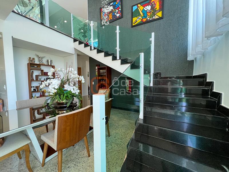 2° Pavimento: escada com pé direito duplo, sala de estar, espaço gourmet com churrasqueira elétrica, jacuzzi e varanda. 4 quartos sendo 1 suíte master com hidromassagem, closet e varanda. Acesso para a área de lazer.