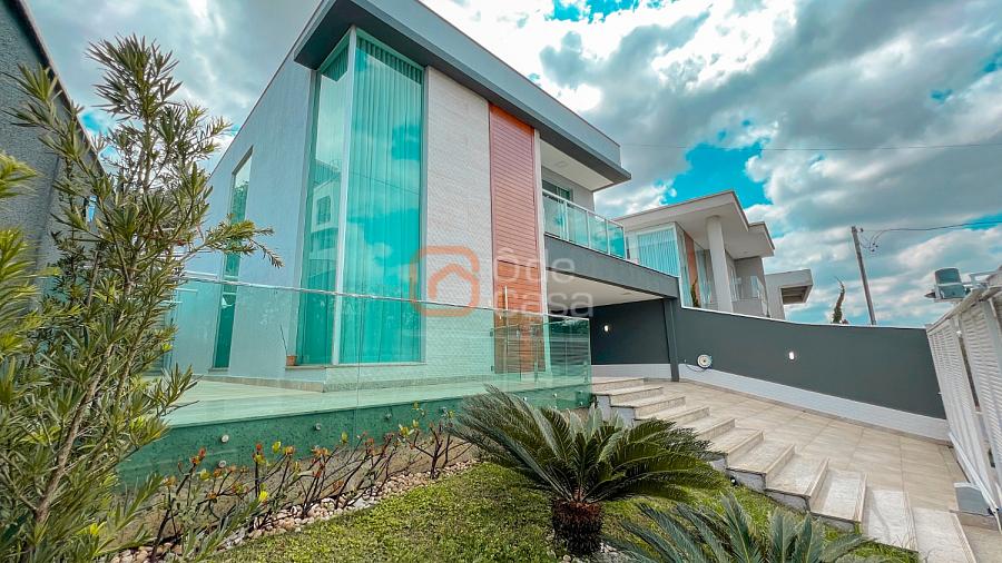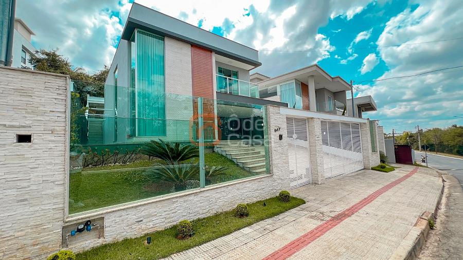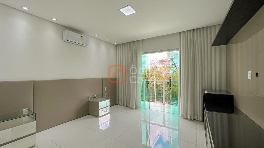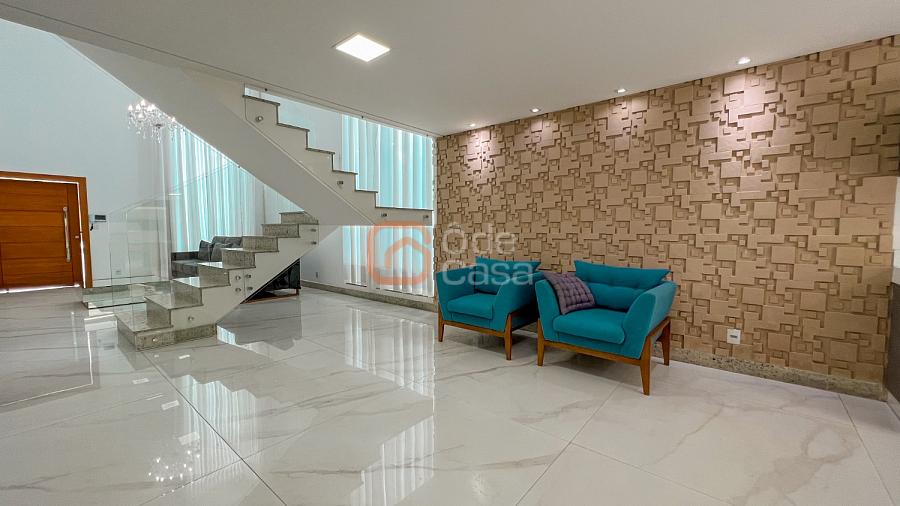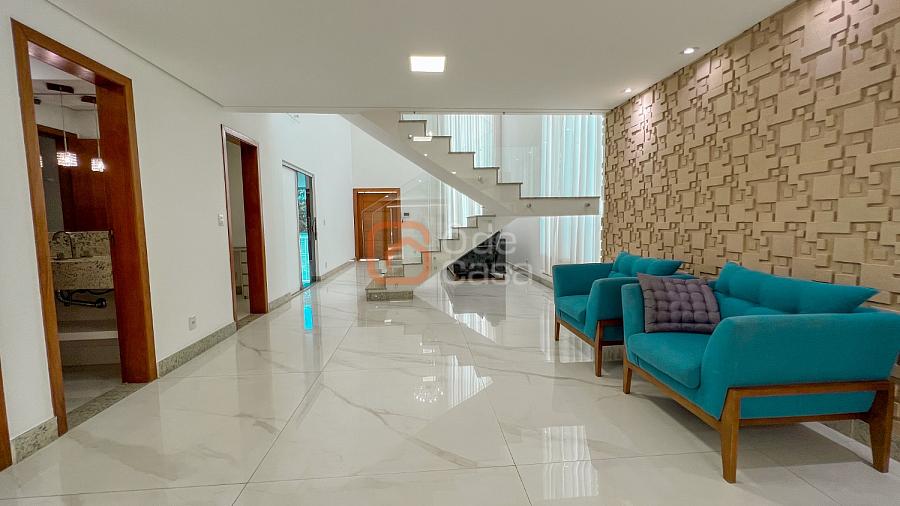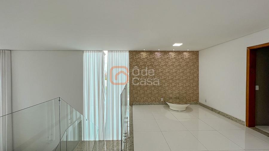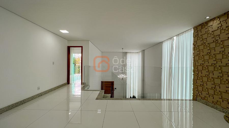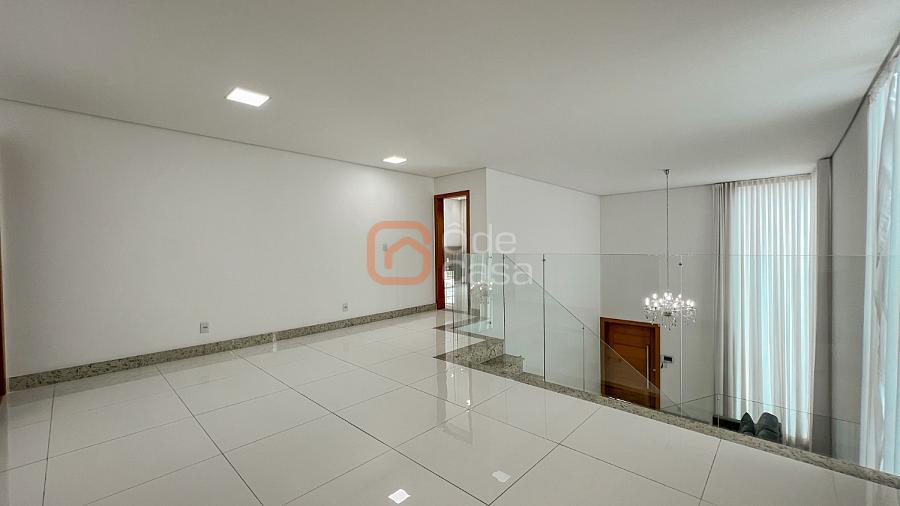 2° Pavimento: Sala de estar íntimo, 4 quartos amplos, dentre eles, 2 semi-suítes e 1 suíte master com um amplo closet, banheira de hidromassagem e ducha dupla, além de uma varanda com vista para a parte frontal da casa.