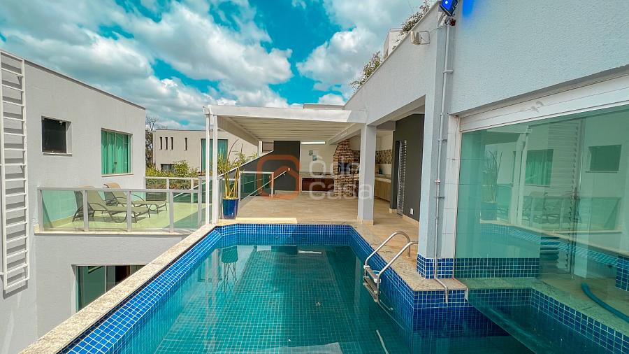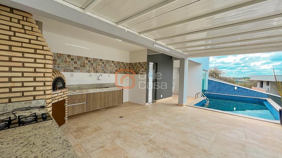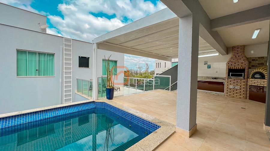 Área externa: Espaço gourmet completo com churrasqueira, forno de pizza e fogão cooktop, área para refeições ao ar livre e lavabo de apoio e piscina aquecida com sauna integrada.